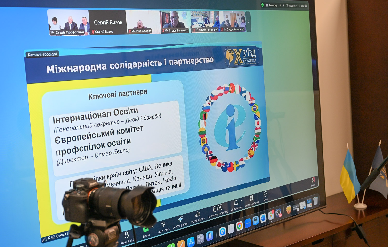 On December 17, 2025, the 10th Congress of the Trade Union of Education and Science Workers of Ukraine was held in videoconference format. Headed by Trade Union President Georgiy Trukhanov and Deputy Presidents Liubov Harbarenko, Serhiy Romaniuk, Olha Chabaniuk, Serhiy Puhachov, and Dmytro Chomko, the congress was attended by delegates from regional organizations and invited guests. In total, the online event brought together over 120 participants.