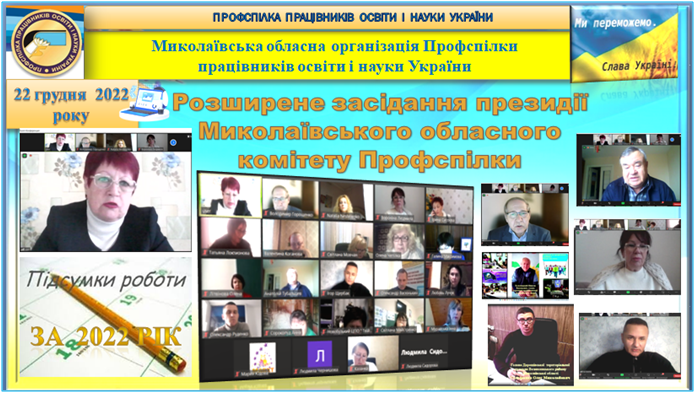Підсумки діяльності обласної організації Профспілки працівників освіти і науки за 2022 рік було підбито на розширеному засіданні президії обласного комітету Профспілки 22 грудня 2022 року з участю голів районних, міських, первинних організацій закладів обласного підпорядкування та закладів вищої освіти.
