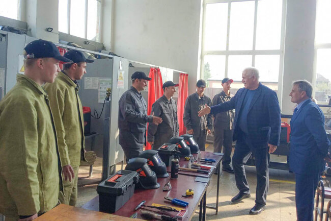 У другій половині дня профспілкові лідери відвідали ДНЗ «Монастирищенський професійний ліцей», де поспілкувалися з трудовим колективом, ознайомилися з професійною діяльністю ліцею, оглянули укриття, волонтерський хаб на підтримку Збройних Сил України та нагородили профактив.