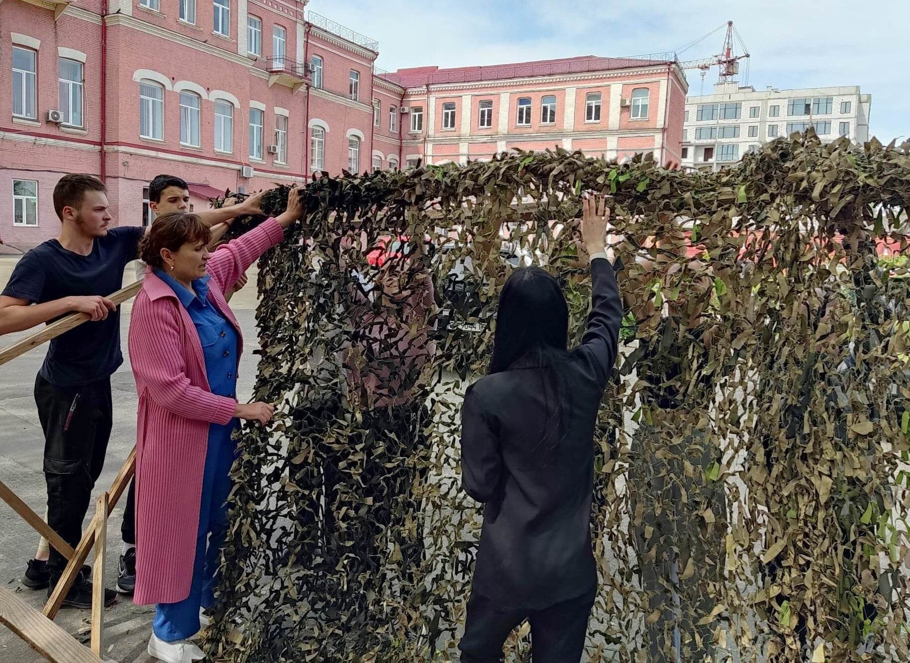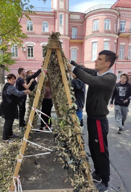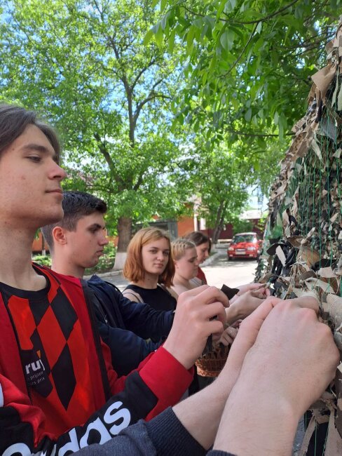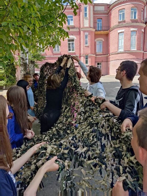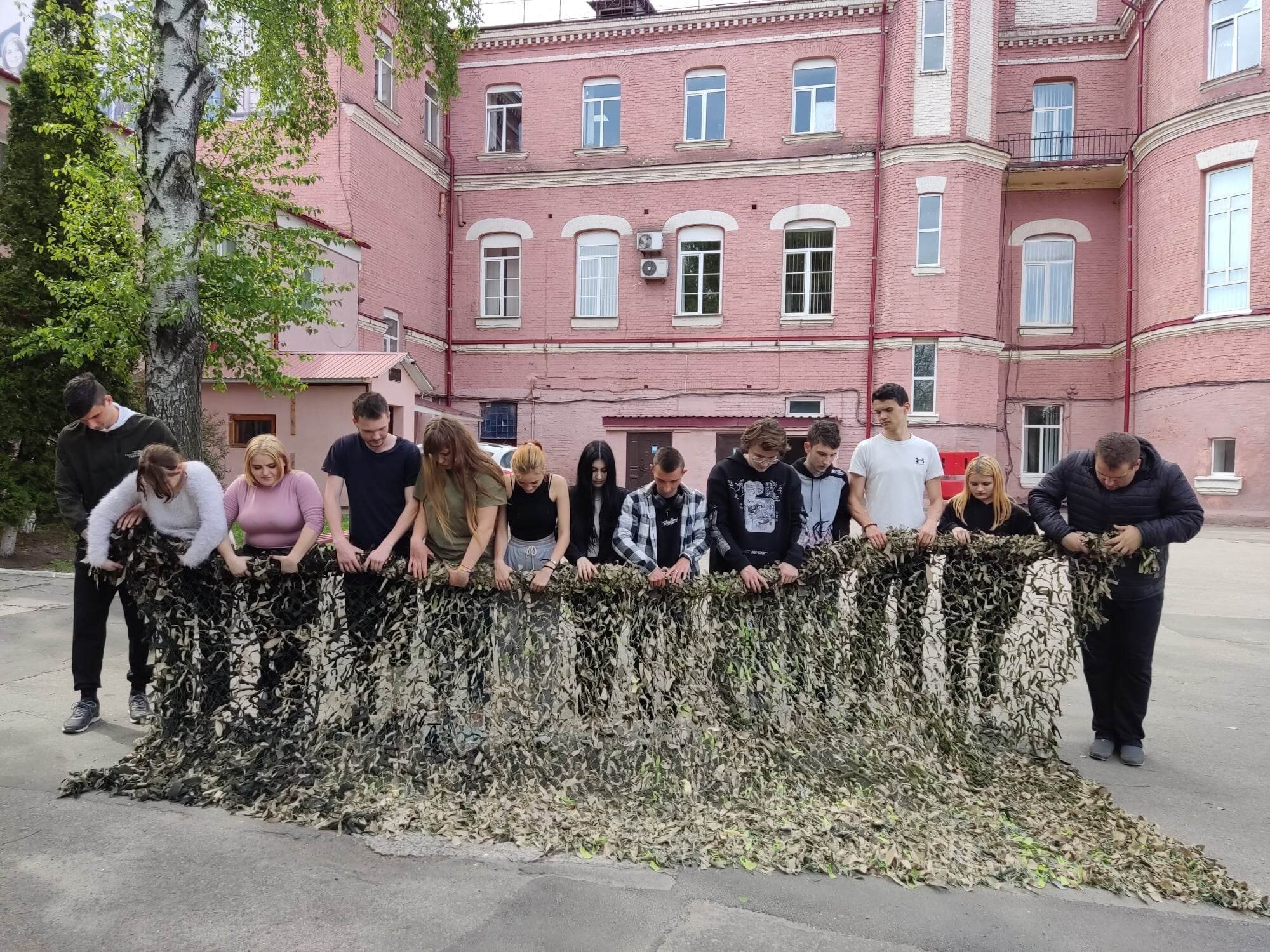Колектив університету активно долучився до плетіння маскувальних сіток. Усі організаційні заходи з їх виготовлення під своїм контролем тримає Центр культури та дозвілля «Гаудеамус». За період війни не один десяток сіток було передано нашим захисникам на Схід, Сумщину, Чернігівщину. Сітки плетуться постійно: в укриттях під час повітряних тривог, в часи блекаутів, в перервах між парами та в часи обідньої перерви. До їх виготовлення долучаються усі співробітники та студенти. Серед студентства особливо відзначилися наші історики. День у день невтомні «павучки» вплітають тканину на сітки.