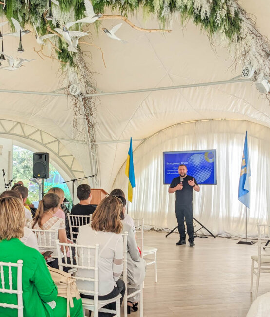У своєму виступі Оксана Піхурко ознайомила учасників конференції з новими напрямами діяльності структурних ланок профспілки під час воєнної агресії росії, зокрема щодо створення волонтерських центрів та гуманітарних хабів у закладах освіти у т.ч. із залученням профспілкових коштів (приблизно 1,5 млн. грн протягом 2022-2023 років).