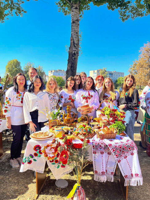 Кожна навчальна група педагогічного коледжу підготувала й презентувала композицію з хлібних виробів та осінніх дарів природи. Свято завершилося частуванням і принесло його господарям та гостям приємні незабутні враження!