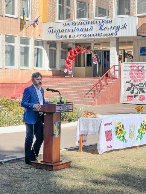 До присутніх працівників педагогічного коледжу, студентів, їхніх батьків та запрошених ветеранів праці зі словами привітань звернулися заступник голови обласної ради Юрій Семенюк і директор департаменту освіту та науки Кіровоградської ОДА Ельза Лещенко. Усі, хто мав слово, дякували Силам оборони України за можливість працювати й бути учасниками подібних заходів.