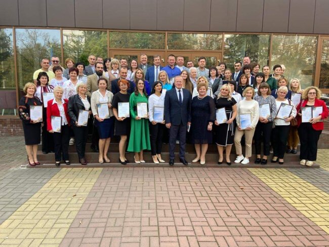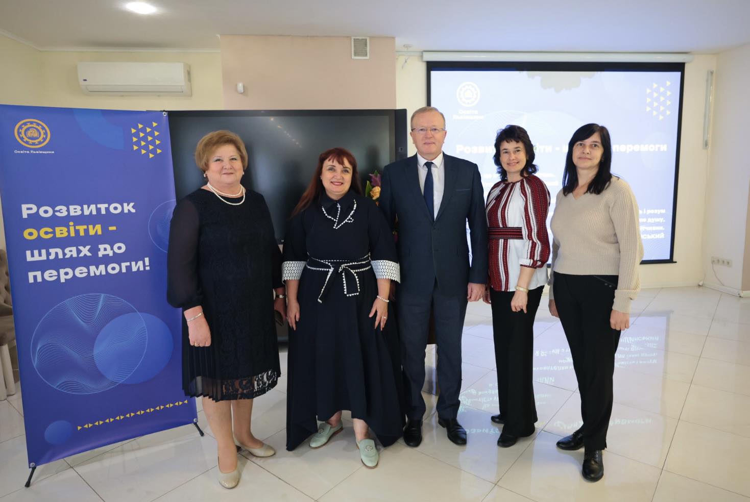 Представник виконавчої влади області Іван Михайлович Собко, який курує освіту і знає, чим і як дихає це середовище, наголосив: наші освітяни цьогоріч створили і подали сотню креативних програм та проєктів, не уявляю, як це можна зробити в такий важкий час... Область завершила завдання з отримання автобусів-школяриків – 200 машин отримали за рік, готовність до навчального процесу в частині обладнання укриттів – понад 90 відсотків, 8 шкіл мають допрацювати цю частину готовності до очного навчання в час війни.