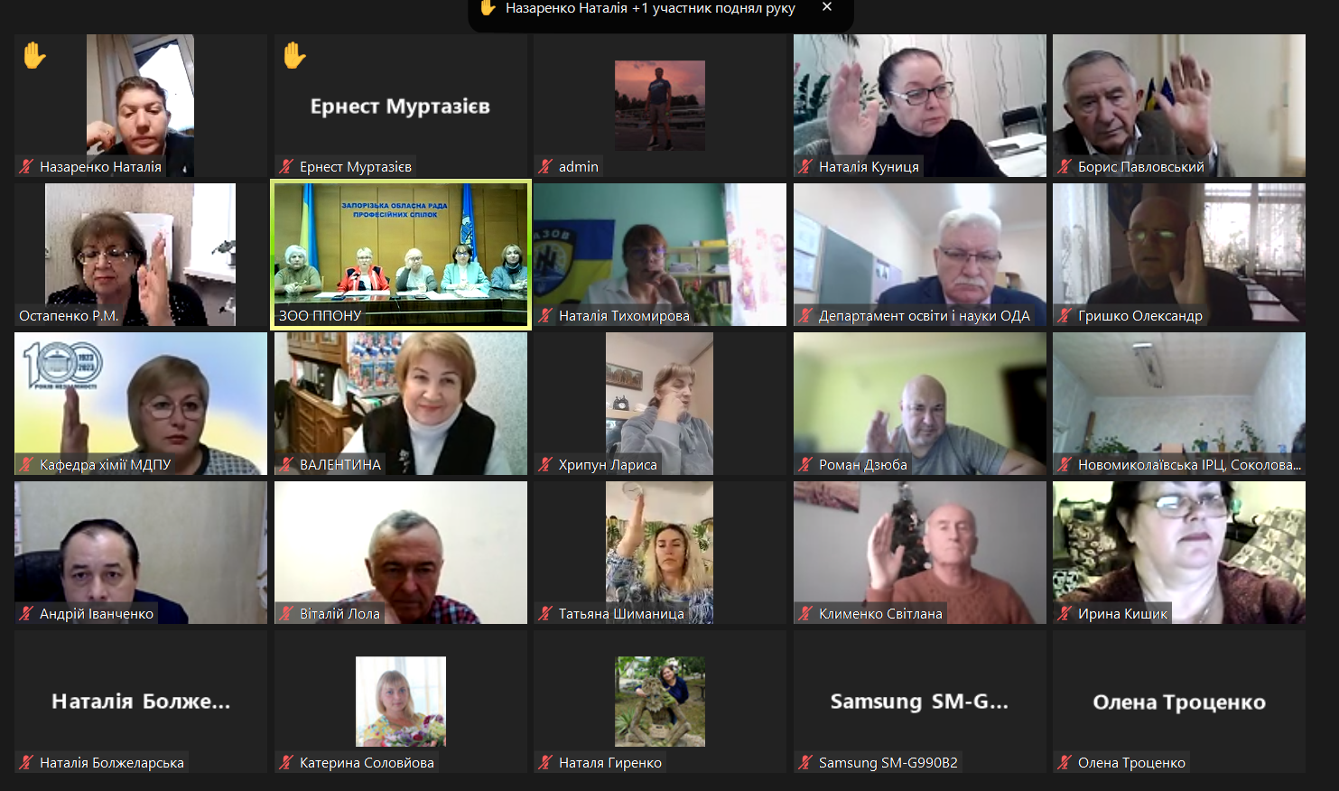 14 грудня 2023 року відбувся V пленум комітету Запорізької обласної організації Профспілки працівників освіти і науки України. Засідання вищого робочого органу обласної організації пройшло в онлайн режимі.