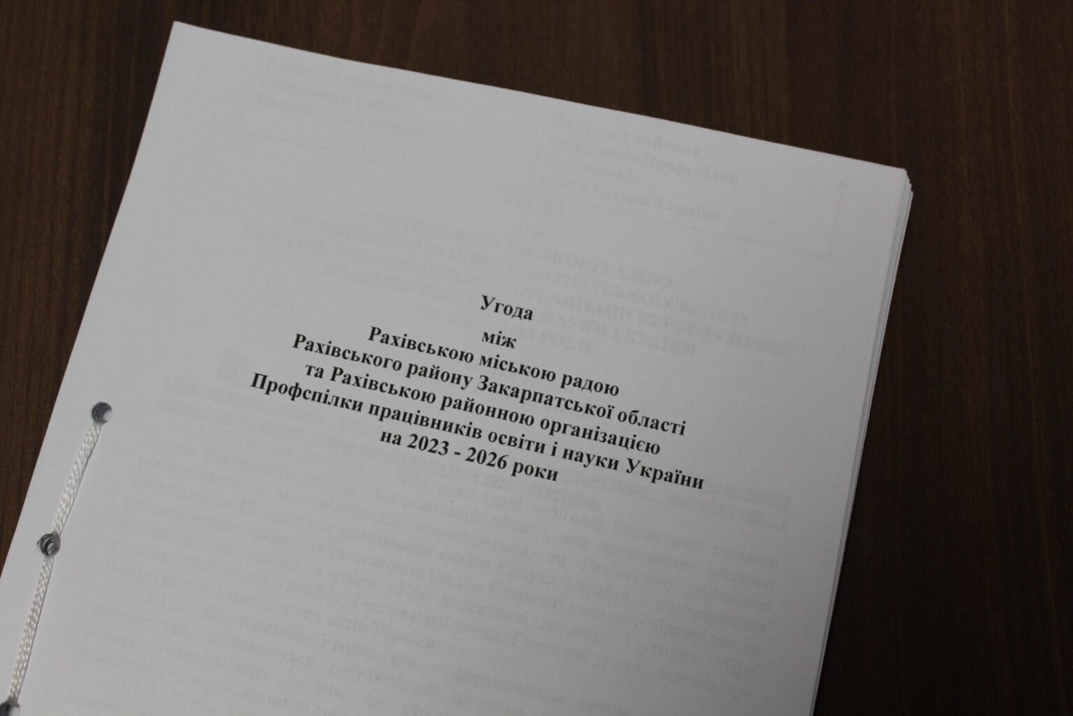Напередодні нового року, 26 грудня 2023 року, підписано Угоду між Рахівською міською радою та Рахівською районною організацією Профспілки працівників освіти і науки України на 2023-2026 роки.