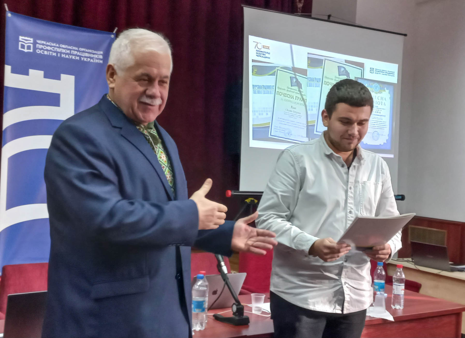Ганна Федорченко, голова Черкаської міської організації Профспілки, заслужений працівник Профспілки працівників освіти і науки України член президії обласного комітету Профспілки, член Ради ФПО; Василь Загородній, голова ППО Черкаського державного технологічного університету, член президії обласного комітету Профспілки; Наталія Cташенко, голова Смілянської міської організації Профспілки, член президії обласного комітету Профспілки, член Ради ФПО ознайомили присутніх з короткими історичними довідками своїх організацій Профспілки, поділилися досвідом успішних дій профактиву щодо захисту освітян, позитивними прикладами профспілкової роботи й здобутками у волонтерстві.
