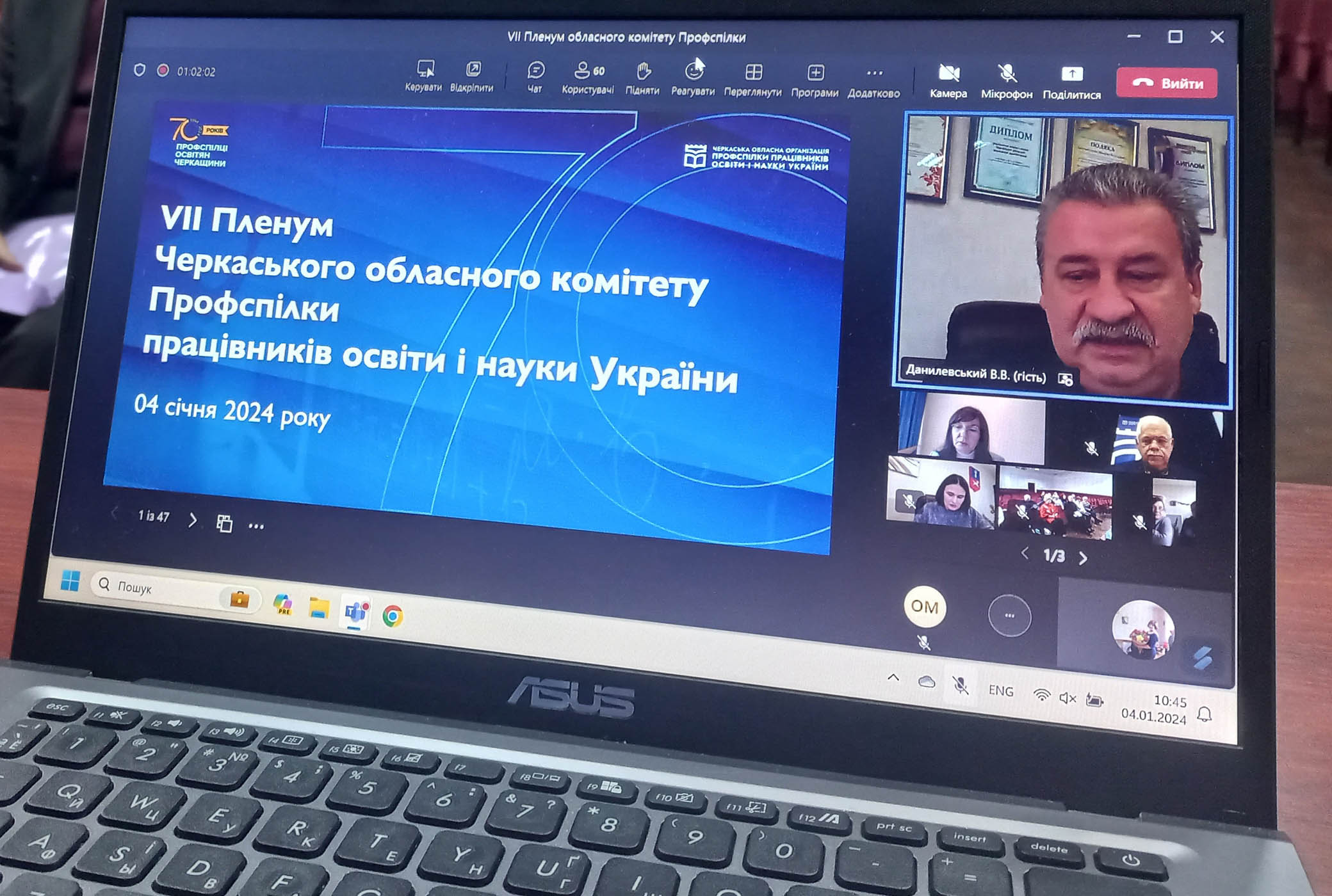 Цьогоріч Черкаська обласна організація Профспілки освітян відзначає свій 70-річний ювілей. Саме цій події й був присвячений VII пленум обласного комітету Профспілки, який відбувся 4 січня 2024 року в змішаному режимі.
