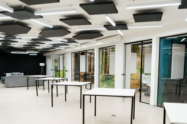 CLUST SPACE – це унікальний проєкт, який поєднує в собі безпечне укриття та сучасний коворкінг. Його мета в тому, щоб забезпечити безперервний освітній процес під час війни, а також стати платформою для зустрічі талановитої творчої молоді з бізнесом, оскільки цей простір продовжуватиме функціонувати й після перемоги.