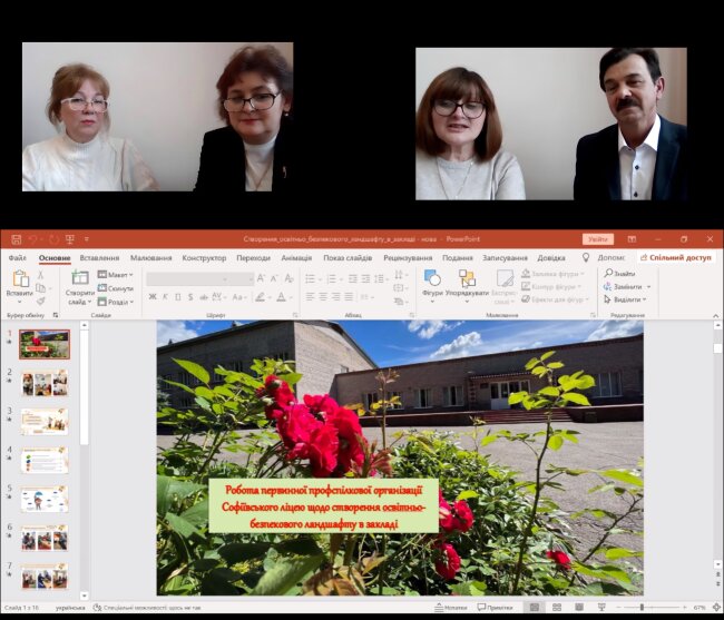 Свій досвід роботи по створенню освітньо-безпекового середовища в Софіївському ліцеї Мигіївської ТГ презентували голова профкому О.І. Гарбуз, директор закладу Т.В. Руда та керівники створених модулів: Л.М. Флореко, А.К. Цимбаленко, Н.А. Кубальська, Кіторога Л.І.