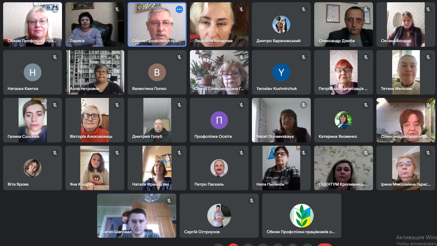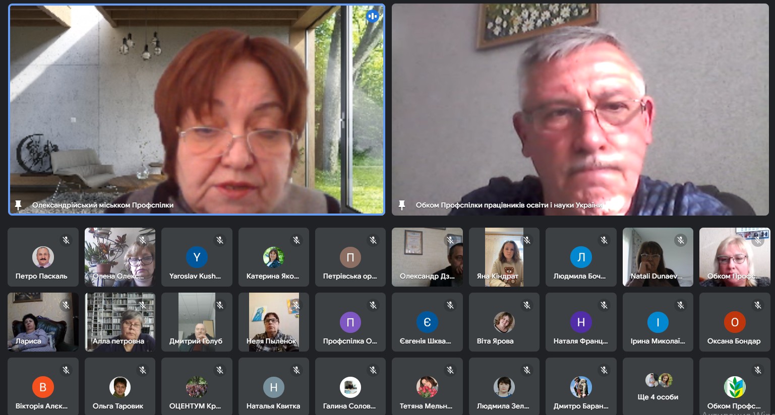 В обговоренні зазначених питань взяли участь: Віра Слєта – голова Олександрійської міської, Ярослав Кушнірчук – голова Новомиргородської міської, Олександр Дзюба – голова Кропивницької міської, Катерина Яковенко – голова Добровеличківської територіальної організацій Профспілки, Колісник Степанія – член президії Онуфріївської територіальної організації Профспілки, Олена Горська, голова первинної профорганізації працівників ЦДУ ім. В. Винниченка.