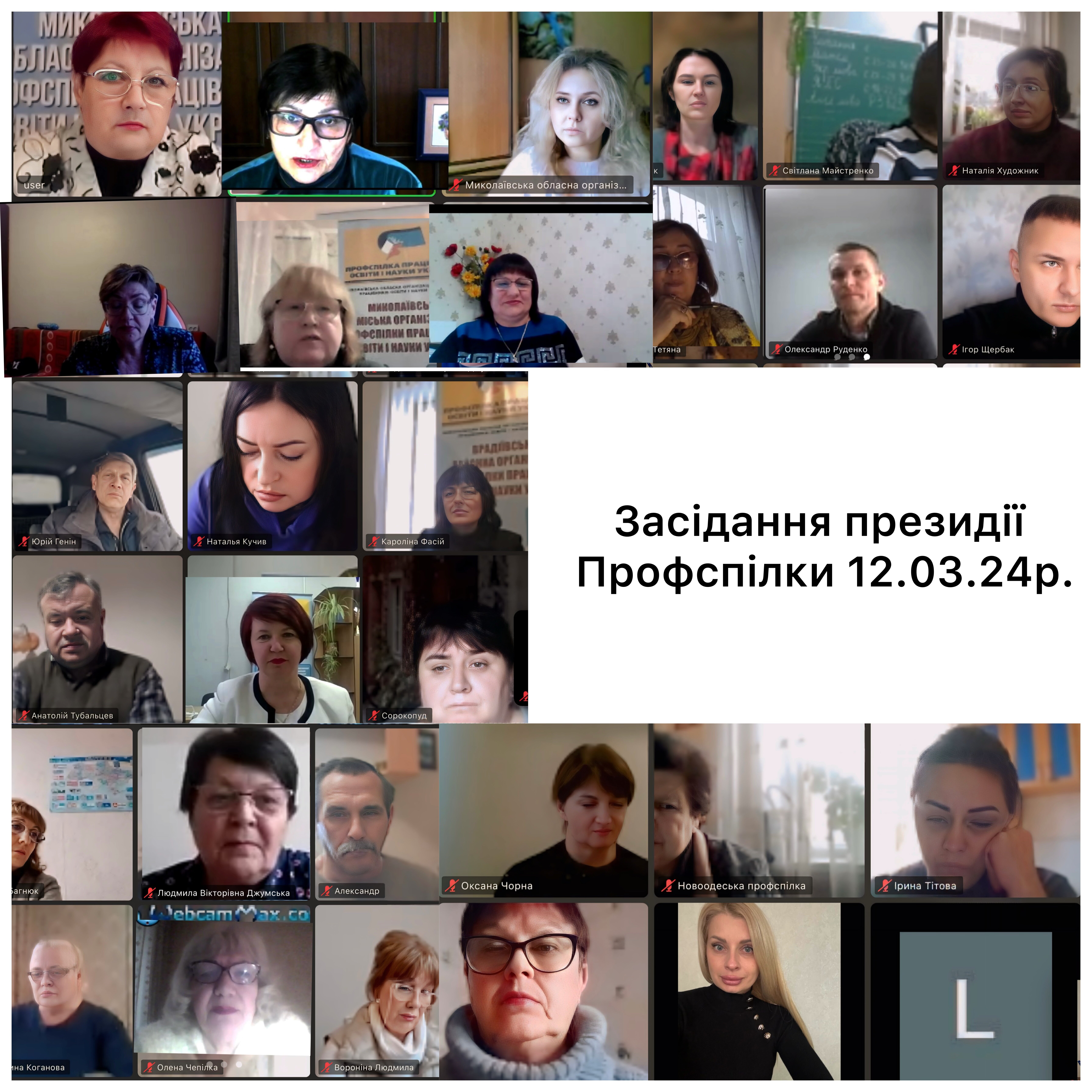 Про результати експертизи колективних договорів та Угод на відповідність чинному законодавству та положенням Галузевої Угоди в ряді профспілкових організацій області, про здійснення громадського контролю за додержанням законодавства про працю в закладах освіти, ефективне використання профспілкових внесків – йшла мова на засіданні президії Миколаївського обласного комітету Профспілки 12 березня, з участю голів районних, міських, первинних організацій обласного підпорядкування.