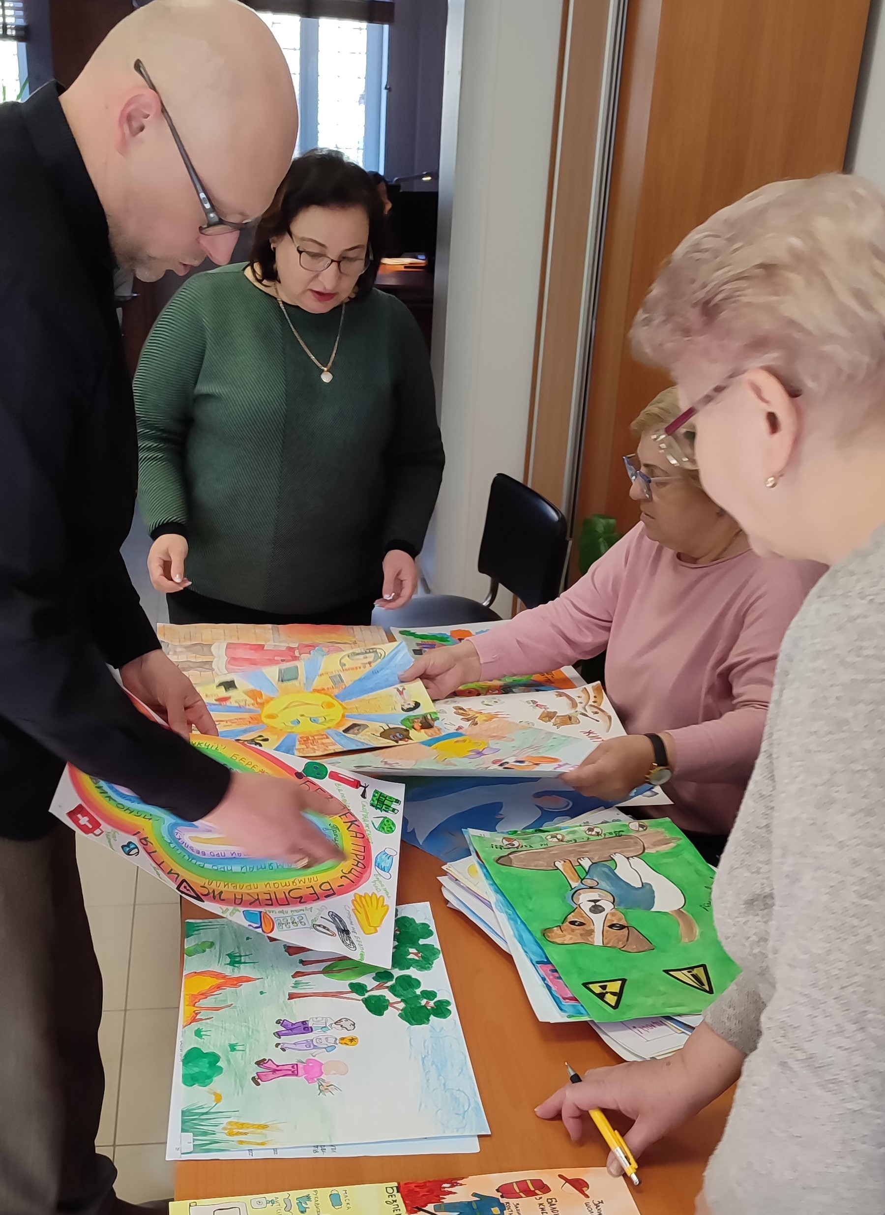 Роботи учасників І етап відбіркового регіонального туру оцінювало обласне журі на чолі з Тетяною Повханич, головою Закарпатської обласної організації Профспілки працівників освіти і науки України. Також Конкурс оцінювали: Світлана Сег, відповідальний представник з охорони праці обласної організації Профспілки, Андрій Надь, завідувач відділу образотворчого та декоративно-ужиткового мистецтва КЗПО Закарпатського обласного центру дитячої та юнацької творчості «ПАДІЮН» Закарпатської обласної ради, Федір Смірнов, спеціаліст з інформаційної та внутріспілкової роботи обласної організації Профспілки та Ганна Табакович, фахівець з охорони праці Ужгородського ліцею ім. В.С. Гренджі-Донського.