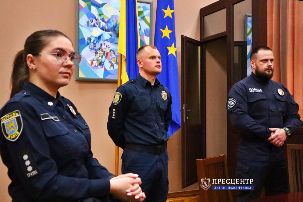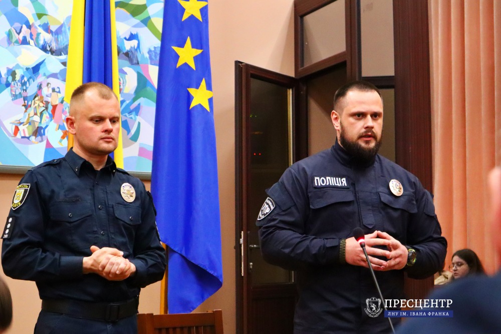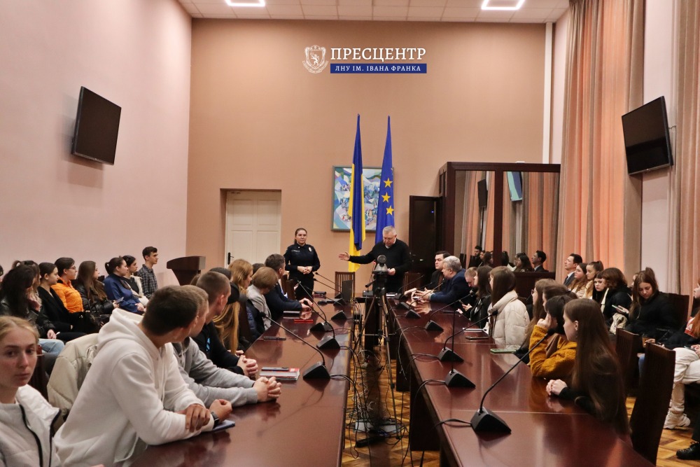 Тематичну лекцію для студентів і працівників ЛНУ ім. Івана Франка провели керівниця відділу звʼязків з громадськістю Патрульної поліції Марія Гримак, старший інспектор відділу звʼязків з громадськістю Андрій Гермак та інспектор відділу звʼязків з громадськістю Святослав Герчаківський.
