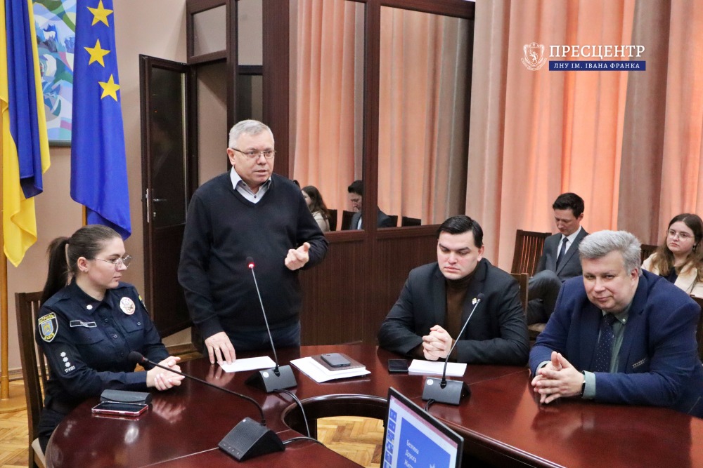 Учасників заходу привітав проректор з науково-педагогічної роботи та соціальних питань і розвитку Володимир Качмар, який зазначив, що сьогоднішній тренінг започатковує співпрацю з патрульною поліцією з метою сприяння підвищенню рівня свідомості та безпеки студентів і працівників Університету.