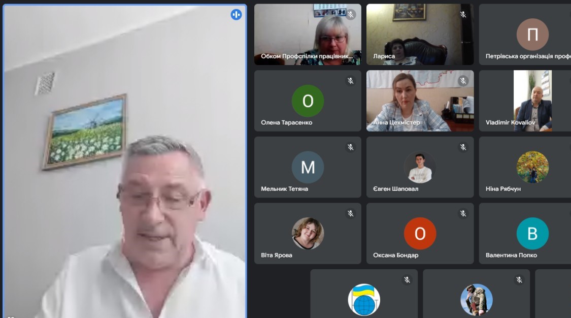 Юрисконсульт обкому Анна Цехмістер ознайомила голів територіальних та первинних профспілкових організацій з актуальними законодавчими змінами, зокрема, щодо надання та оплати різних видів відпусток, в тому числі відпустки у зв'язку з профспілковим навчанням, внесення змін та доповнень до колективних договорів, порядку оформлення відстрочки від мобілізації педагогічним працівникам та повернення на роботу до закладів освіти військовослужбовців після звільнення з ЗСУ.