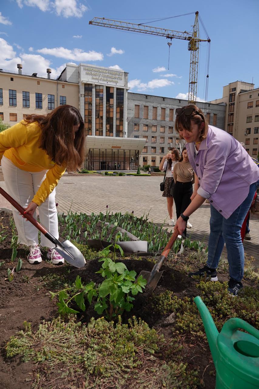 Представники Молодіжної ради Федерації профспілок України на чолі з головою Іванною Храпко разом із ректором Університету Володимиром Бабаєвим, профспілковим активом, представниками Житлово-комунального коледжу приєдналися до Всеукраїнської акції «Посади калину до Перемоги», яка є символом незламної України.