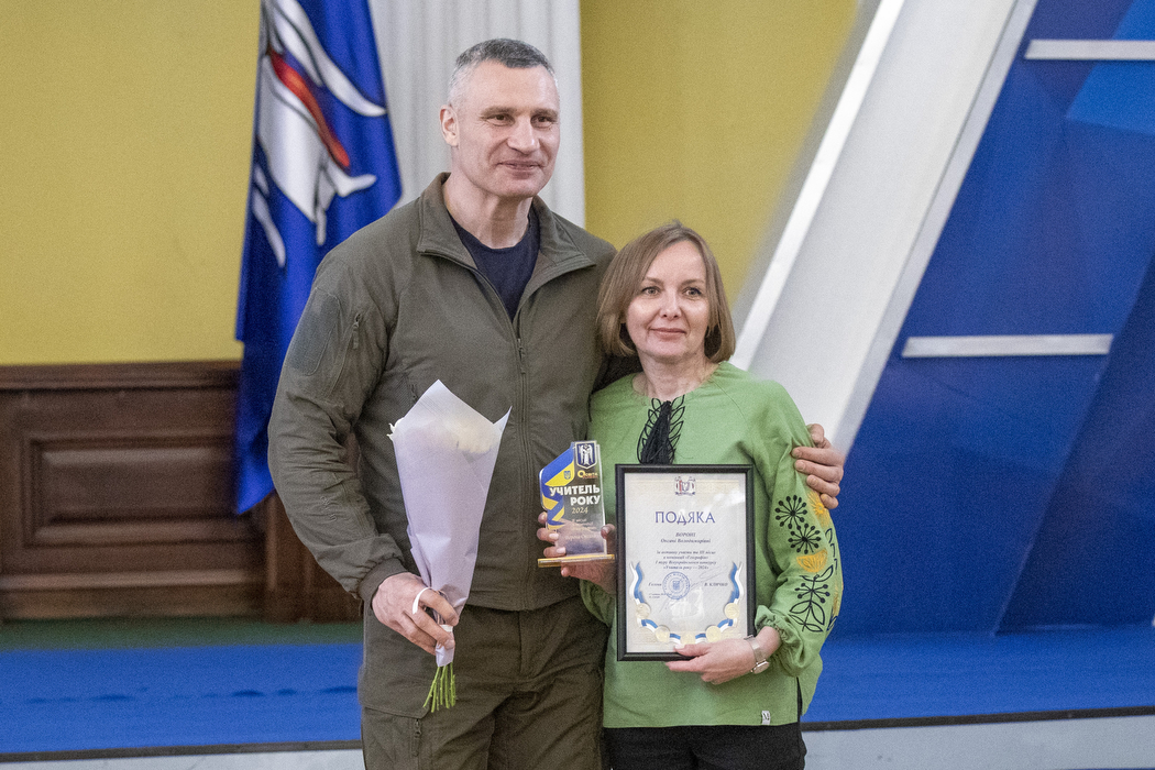 Мер Києва Віталій Кличко у столичній мерії нагородив 12 переможців і лауреатів першого (міського) туру всеукраїнського конкурсу «Учитель року – 2024». Вони отримали Подяки Київського міського голови та пам’ятні нагородні статуетки.