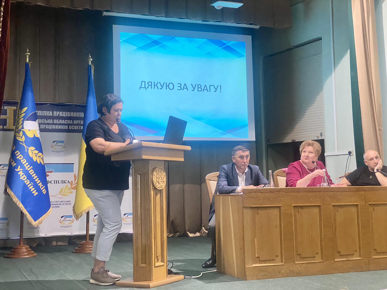 Наголосила, що під час підготовки та проведення звітів і виборів слід керуватися Статутом Профспілки, Інструкцією та Методичними рекомендаціями з проведення звітів і виборів у Профспілці працівників освіти і науки України, затверджених постановою президії ЦК Профспілки. Відмітила, що всі первинні організації отримають спеціальний випуск «Профспілкового вісника», в якому будуть розміщені всі необхідні документи та інформації про роботу Центрального комітету та обласної організації Профспілки, які послужать фаховою підтримкою для організації та проведення звітно-виборних зборів та конференцій.