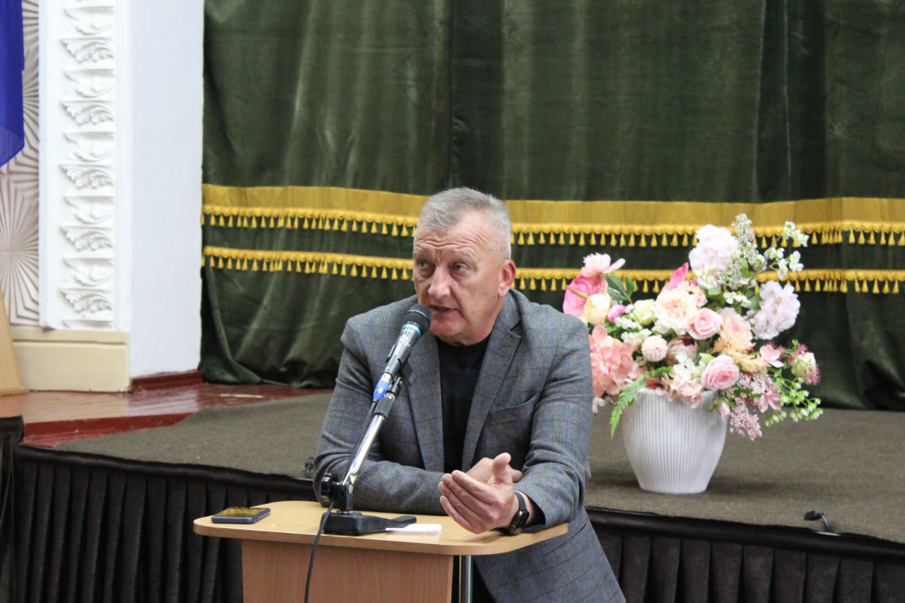 У своєму виступі Сергій Пугачов розповів про організацію звітів і виборів у Вінницькій обласній організації Профспілки працівників освіти і науки та про роботу Профспілки в умовах воєнного стану.