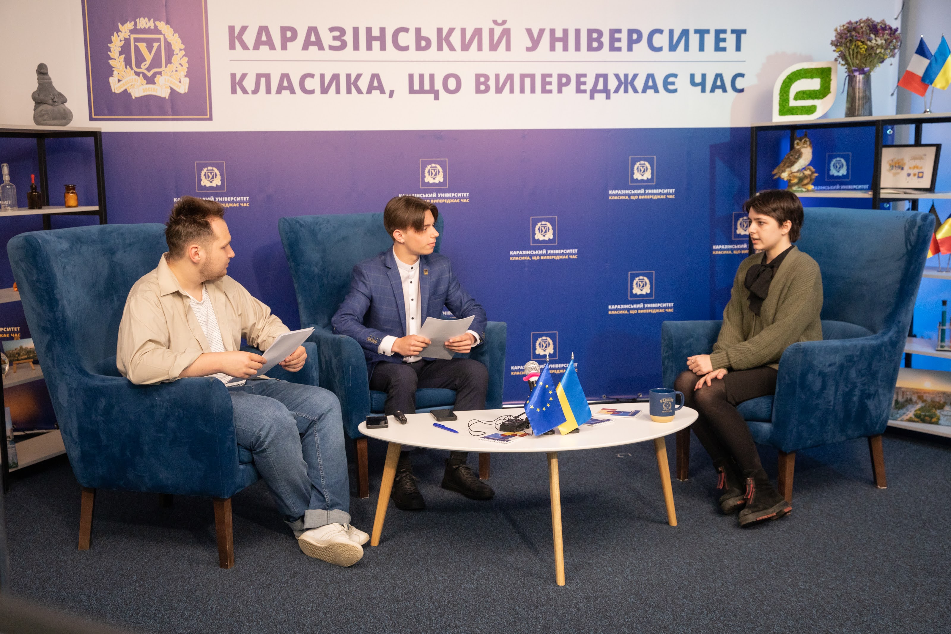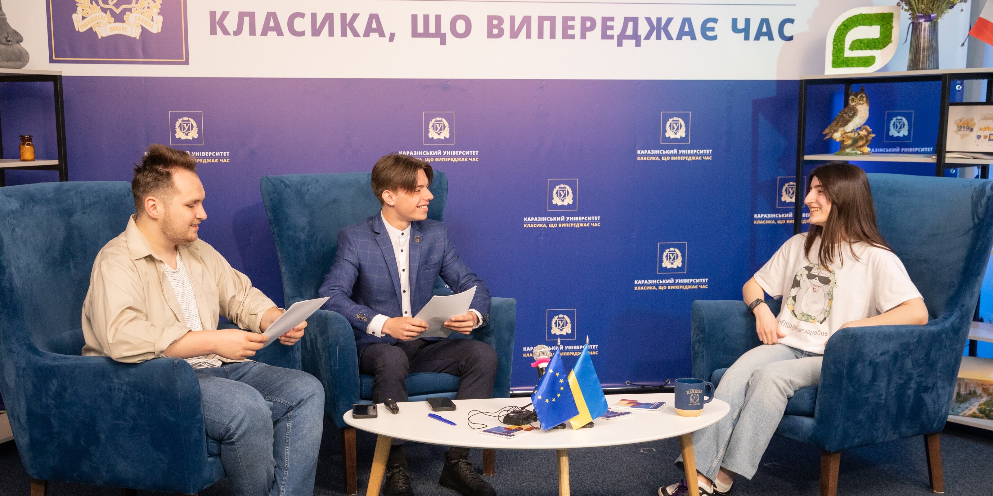 Відбулася перша зустріч у межах Марафону «Від студентів — абітурієнтам». Голова Студентської ради Микита Кучеров і заступник голови Профспілкової організації студентів, аспірантів і докторантів Євгеній Капран у дружній атмосфері поспілкувалися з представниками каразінської спільноти.