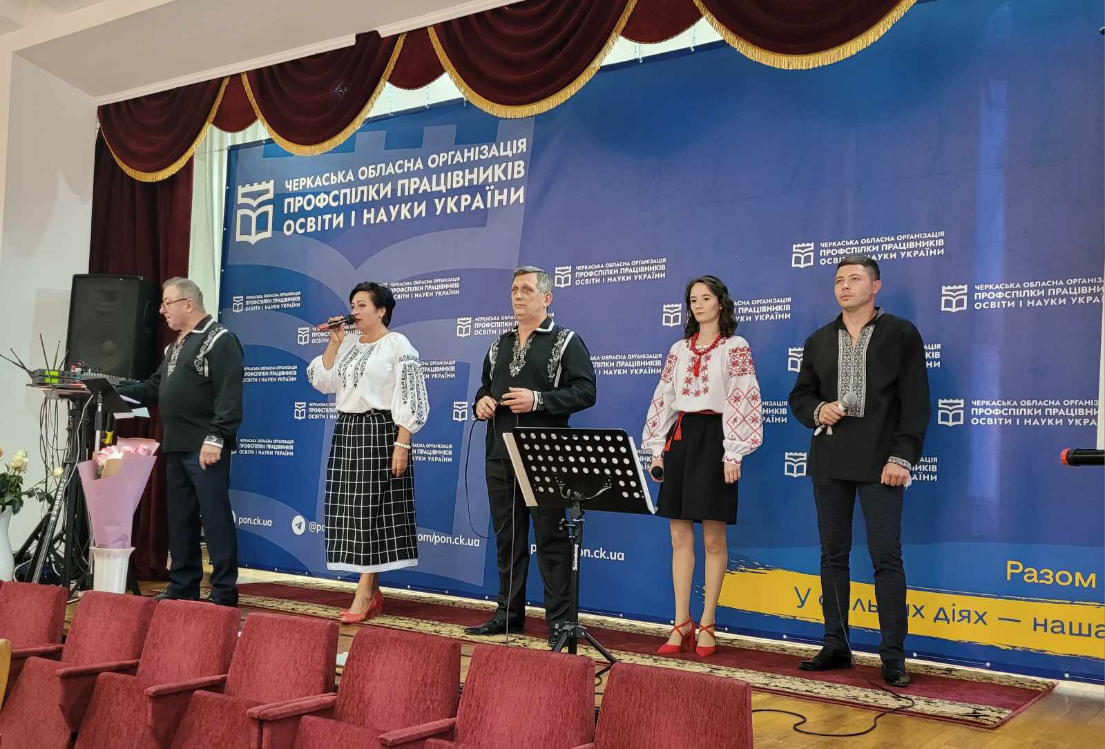 Народний аматорський гурт «Хрещатик» Черкаської обласної організації Профспілки працівників освіти і науки України привітав учасників заходу з прийдешніми освітянськими святами.