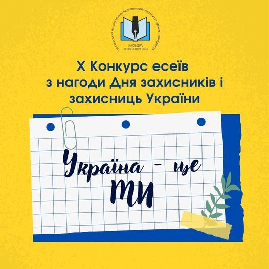 З ініціативи кафедри журналістики в Полтавському національному педагогічному університеті імені В. Г. Короленка до Дня захисників і захисниць України відбувся X конкурс есеїв на патріотичну тематику «Україна – це ми» серед студентів закладів вищої освіти.