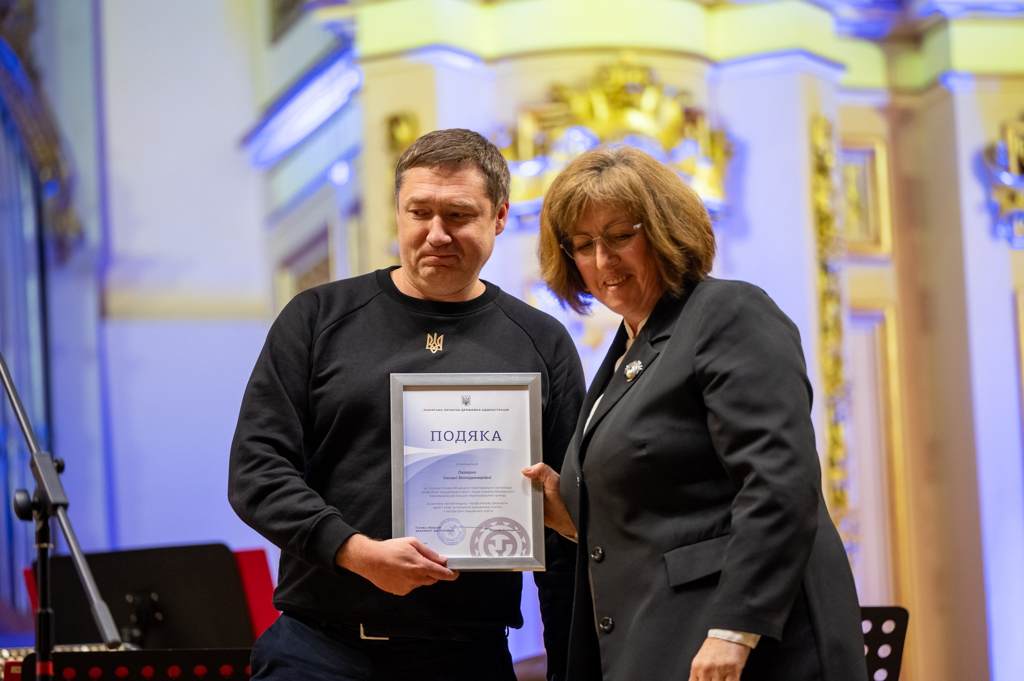 Привітати працівників освіти прийшли очільники області: Максим Зіновійович Козицький, начальник Львівської обласної військової адміністрації і Юрій Ігорович Холод, виконувач обов’язків голови Львівської обласної ради. Разом із словами щирого захоплення працею освітян, подякою за виховання і навчання, незважаючи на щоденні тривоги і втрати, життя і працю в реаліях війни педагогічним працівникам вручено численні нагороди.
