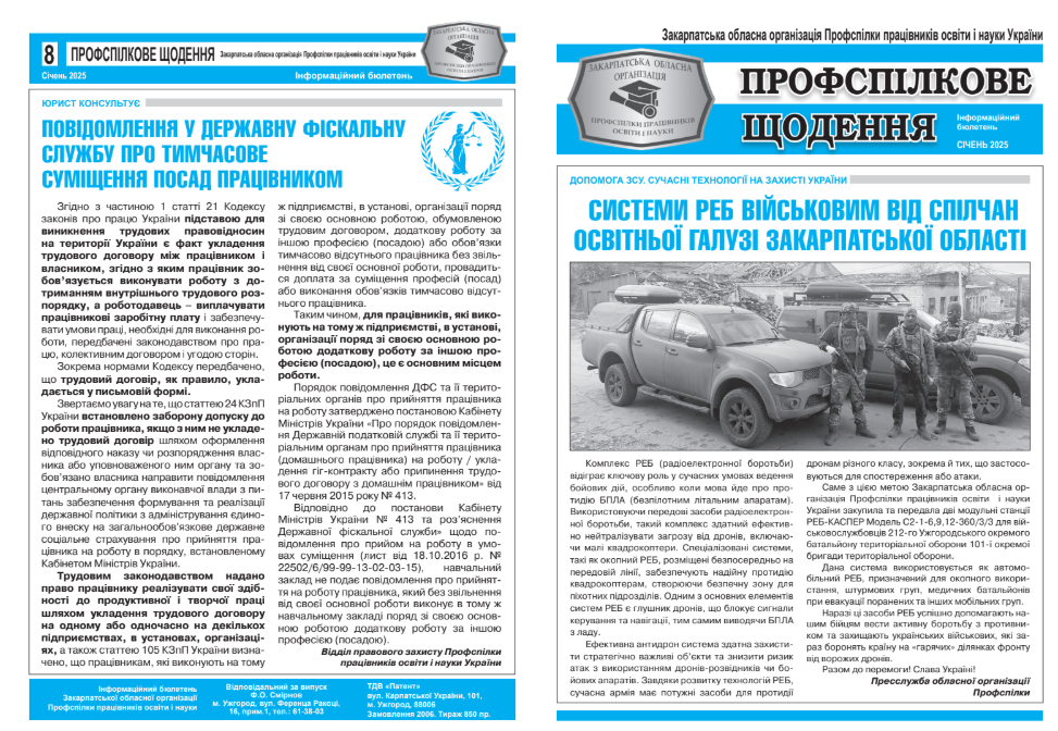 Ознайомитися з останнім випуском видання «Профспілкове щодення»