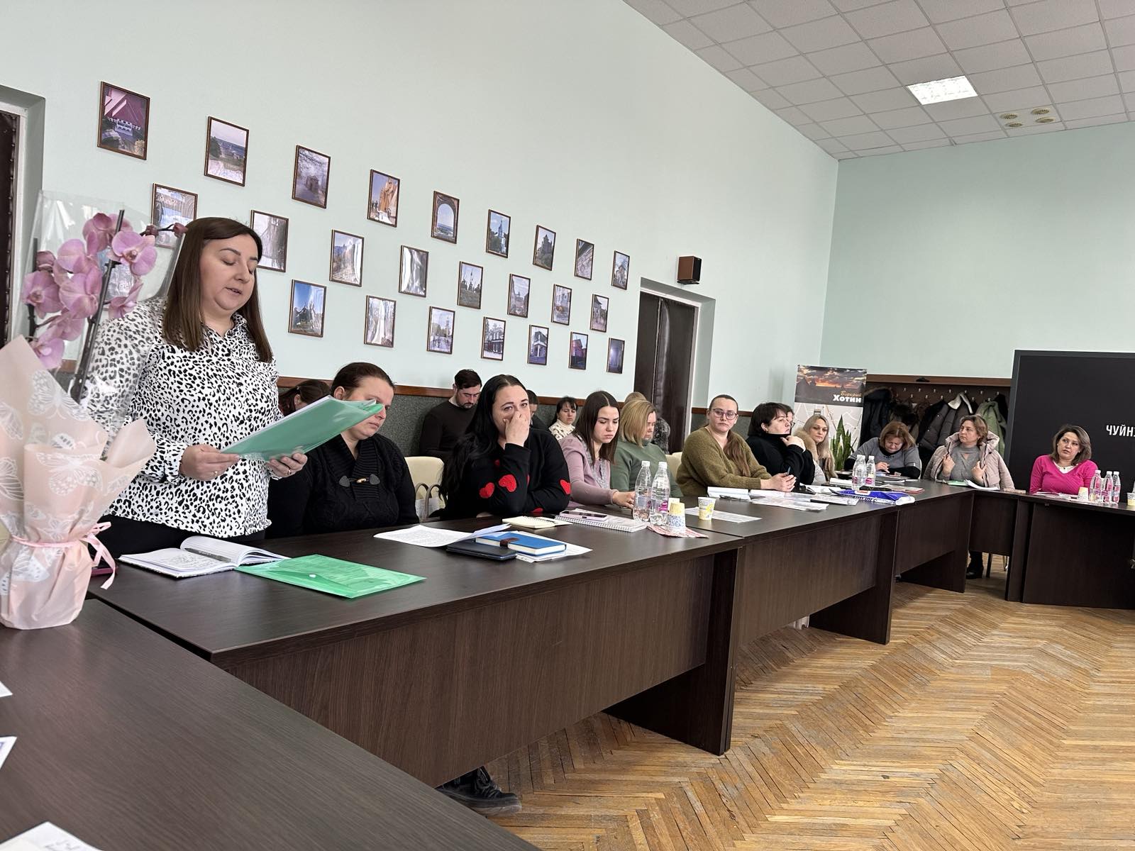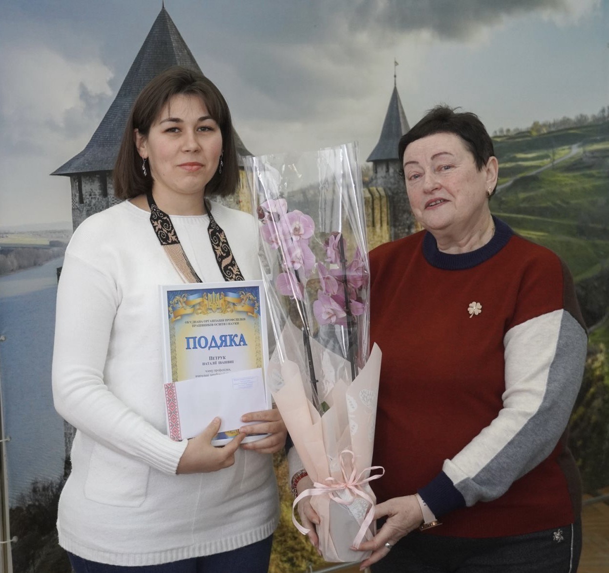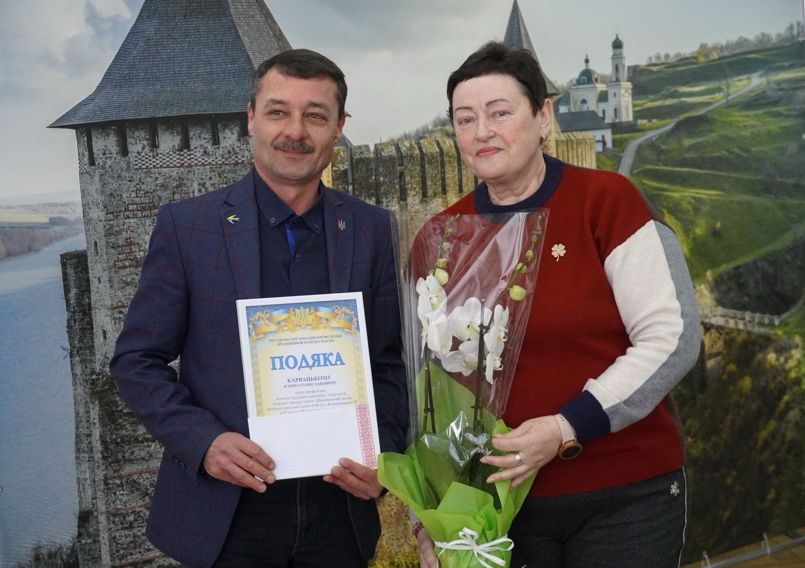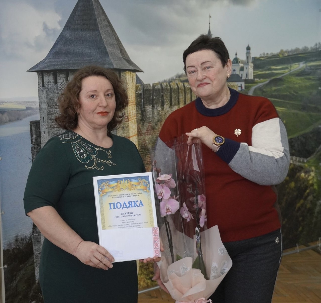 Присутні привітали членів профспілки, переможця та учасників І етапу Всеукраїнського конкурсу «Учитель Року – 2025» І.С. Карвацького – вчителя трудового навчання ОЗО «Шиловецький ЗЗСО І- ІІІст» (ІІ місце), Н.А. Петрук – вчителя зарубіжної літератури Грозинецького ліцею, С.В. Якобець – вчителя хімії ОЗО-Колінковецький ліцей.