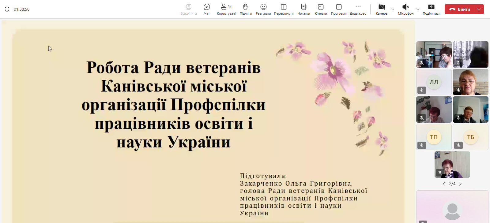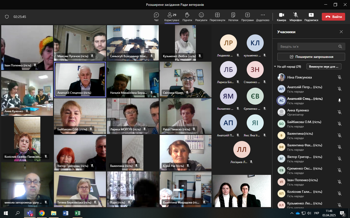 3 квітня 2025 року в змішаному режимі відбулося чергове засідання Ради ветеранів праці працівників освіти і науки Черкаської обласної організації Профспілки працівників освіти і науки України.