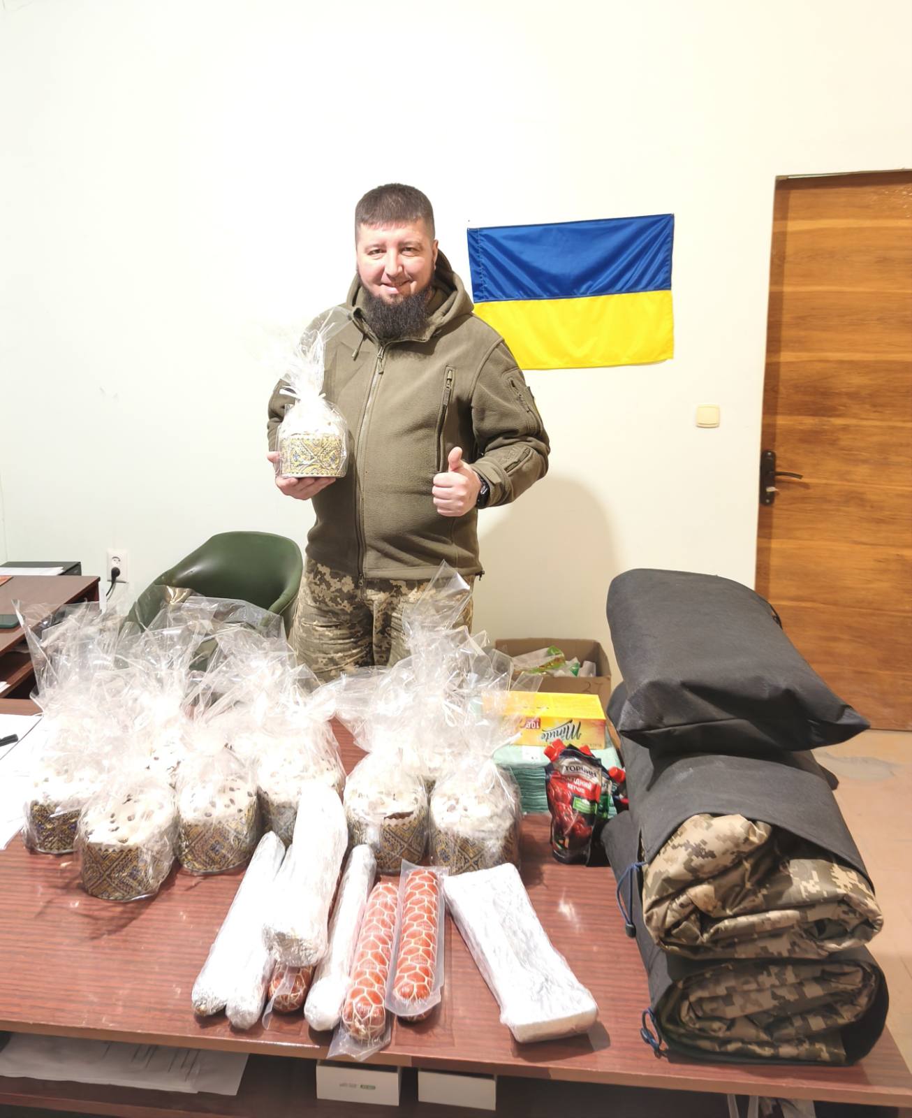 Після відправки на фронт п’яти дронів та десяти антидронових плащів від Львівської обласної Профспілки, для воїнів знову організовано та надіслано, разом із продуктовими передвеликодніми вітаннями, новий комплект антидронових плащів.