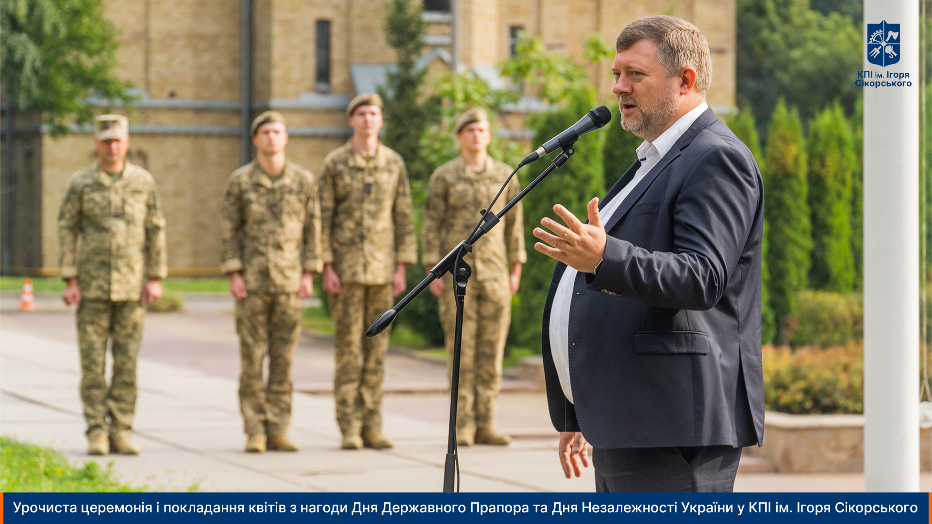 У Національному технічному університеті України «Київський політехнічний інститут імені Ігоря Сікорського» відбулася урочиста церемонія підняття синьо-жовтого стяга та покладання квітів з нагоди Дня Державного Прапора та Дня Незалежності України.