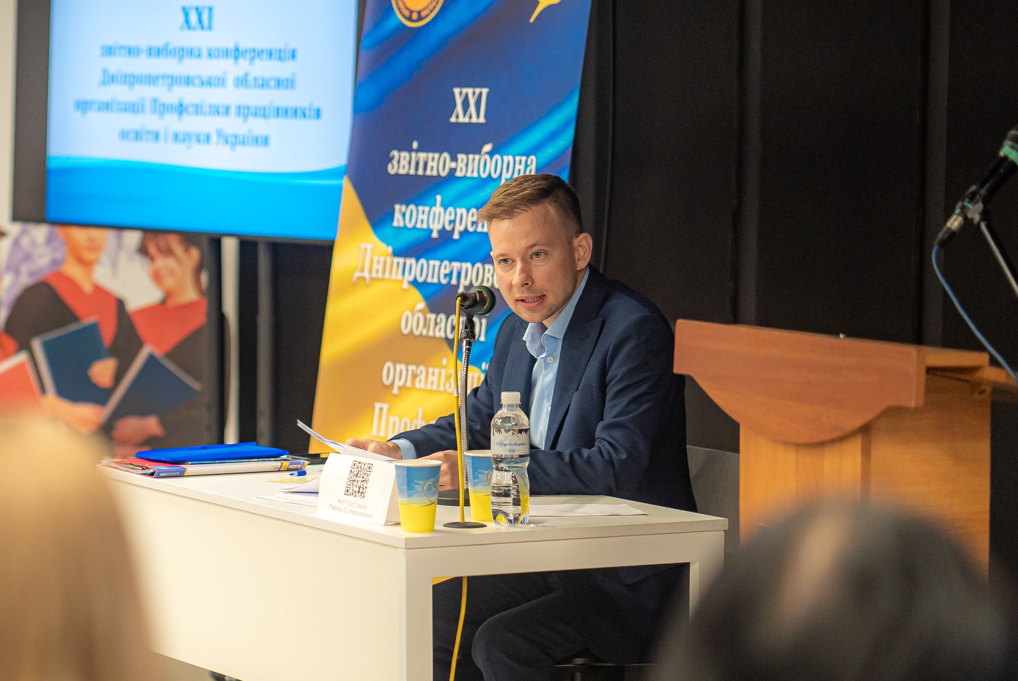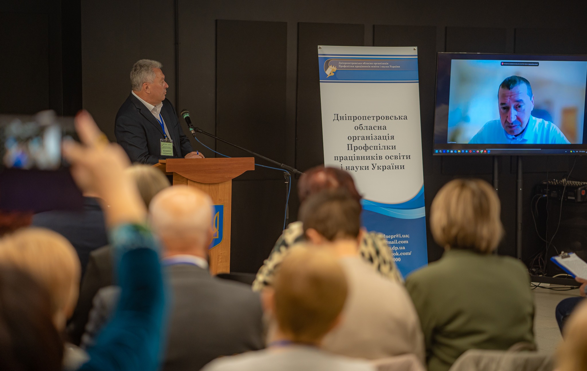 Важливою частиною конференції стали виступи гостей. Зокрема, Сергій Романюк поінформував учасників про діяльність Профспілки на загальнонаціональному рівні, наголосивши на ключових викликах, перед якими нині стоїть профспілковий рух у сфері освіти. Він підкреслив активну роботу Профспілки щодо захисту прав освітян та відстоювання справедливого фінансування галузі, попри обмеженість можливостей впливу в умовах воєнного стану.