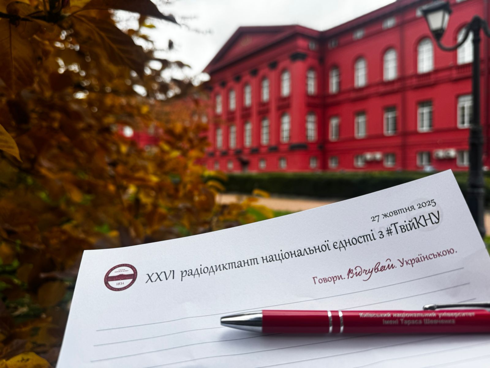 Сьогодні разом із нами диктант писатимуть полярники на українській антарктичній станції «Академік Вернадський», наші воїни на передовій, ветерани, вчителі, школярі, українські громади на різних континентах. Хтось робить це в авдиторії Червоного корпусу, хтось – у бліндажі, хтось – за полярним колом, але всіх нас єднає спільне: ми українці, які говорять і мислять українською. І саме це робить нас сильними, незалежно від відстаней чи обставин. Ми вдячні кожному, хто сьогодні долучається до цього єднання через слово».