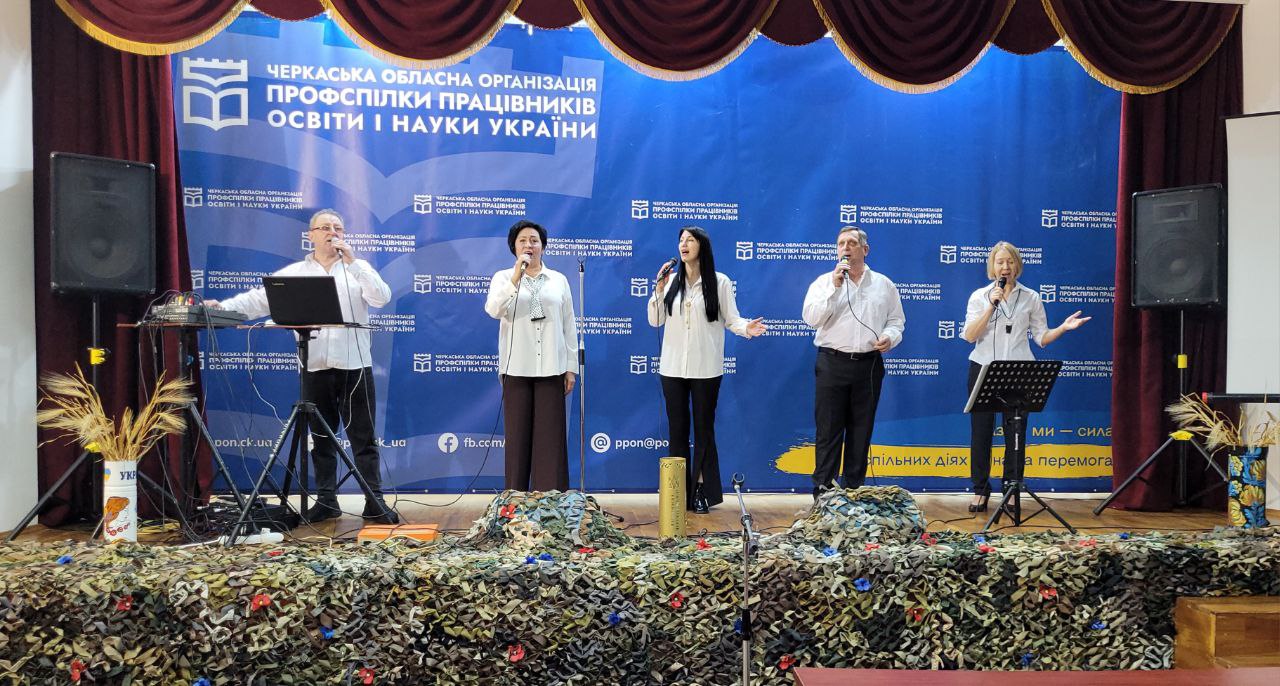 Вітав присутніх музичними творами народний аматорський гурт «Хрещатик» Обласного Будинку вчителя Черкаської обласної організації Профспілки працівників освіти і науки України.