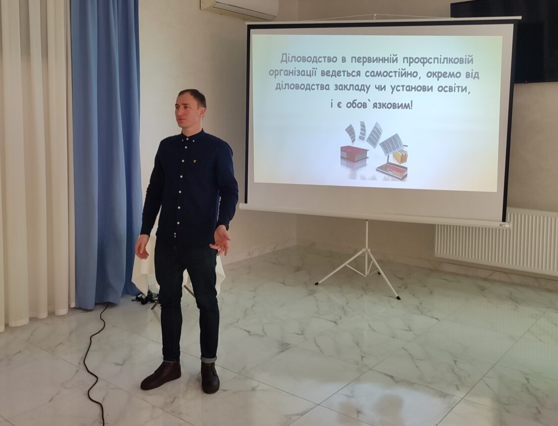 Завершальний блок, про діловодство в первинній профспілковій організації, мотивацію членства у профспілці та її інформаційну діяльність озвучив фахівець з профспілкової діяльності обласної організації Профспілки Федір Смірнов.