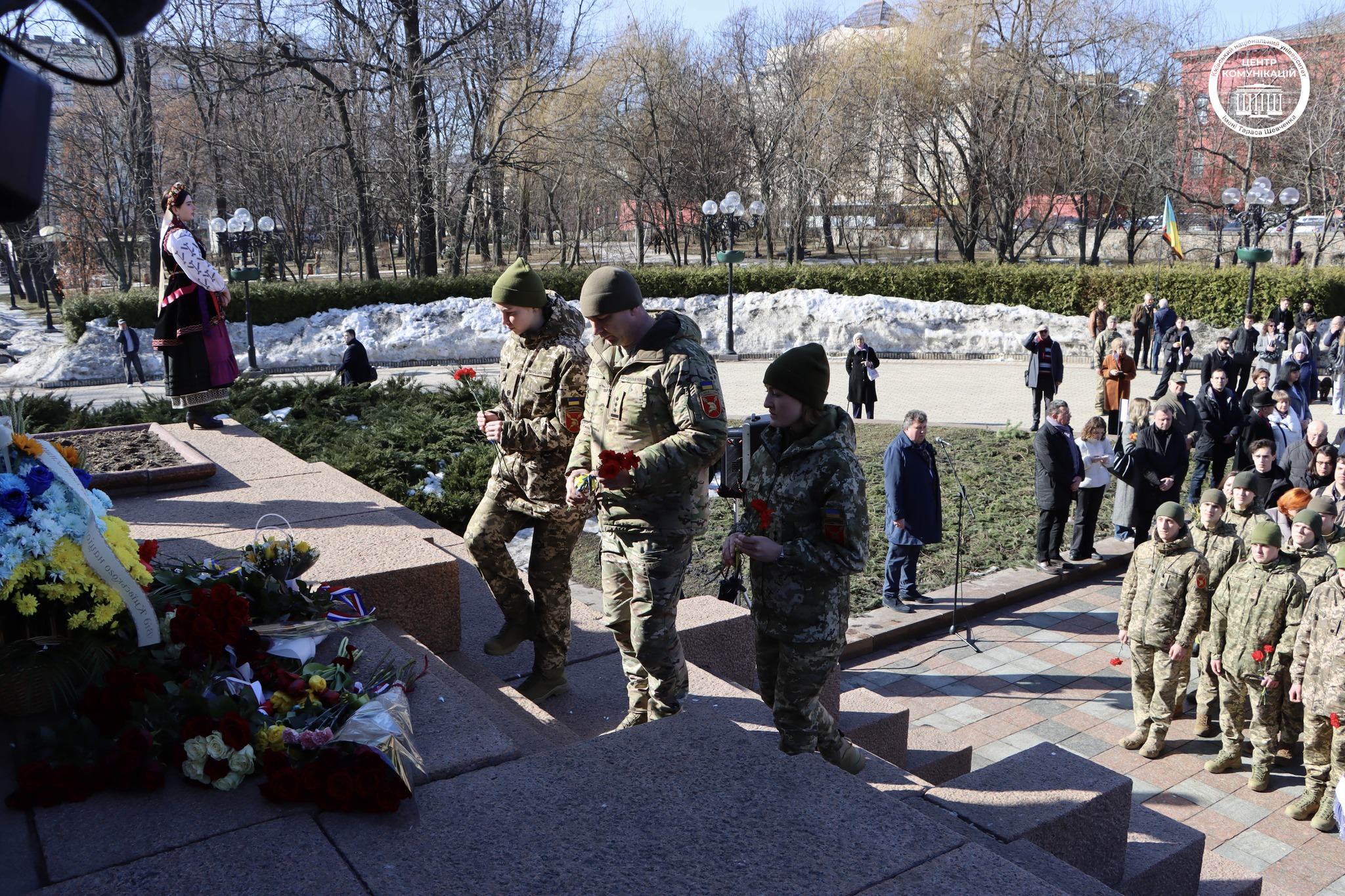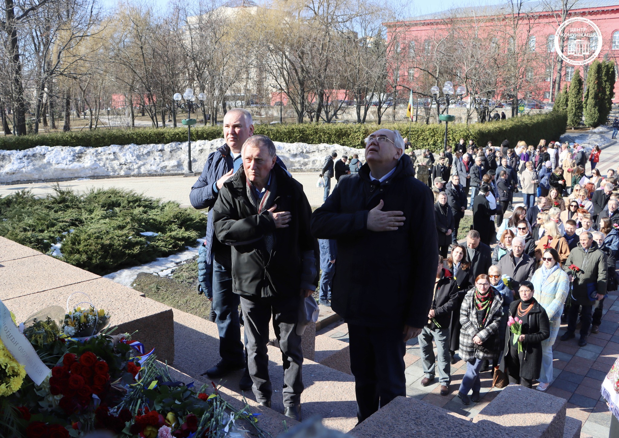 З нагоди пам’ятної дати шевченківці поклали квіти до підніжжя пам’ятника поетові в парку навпроти Червоного корпусу університету. У церемонії взяли участь співробітники та студенти університету, а представники дипломатичного корпусу.