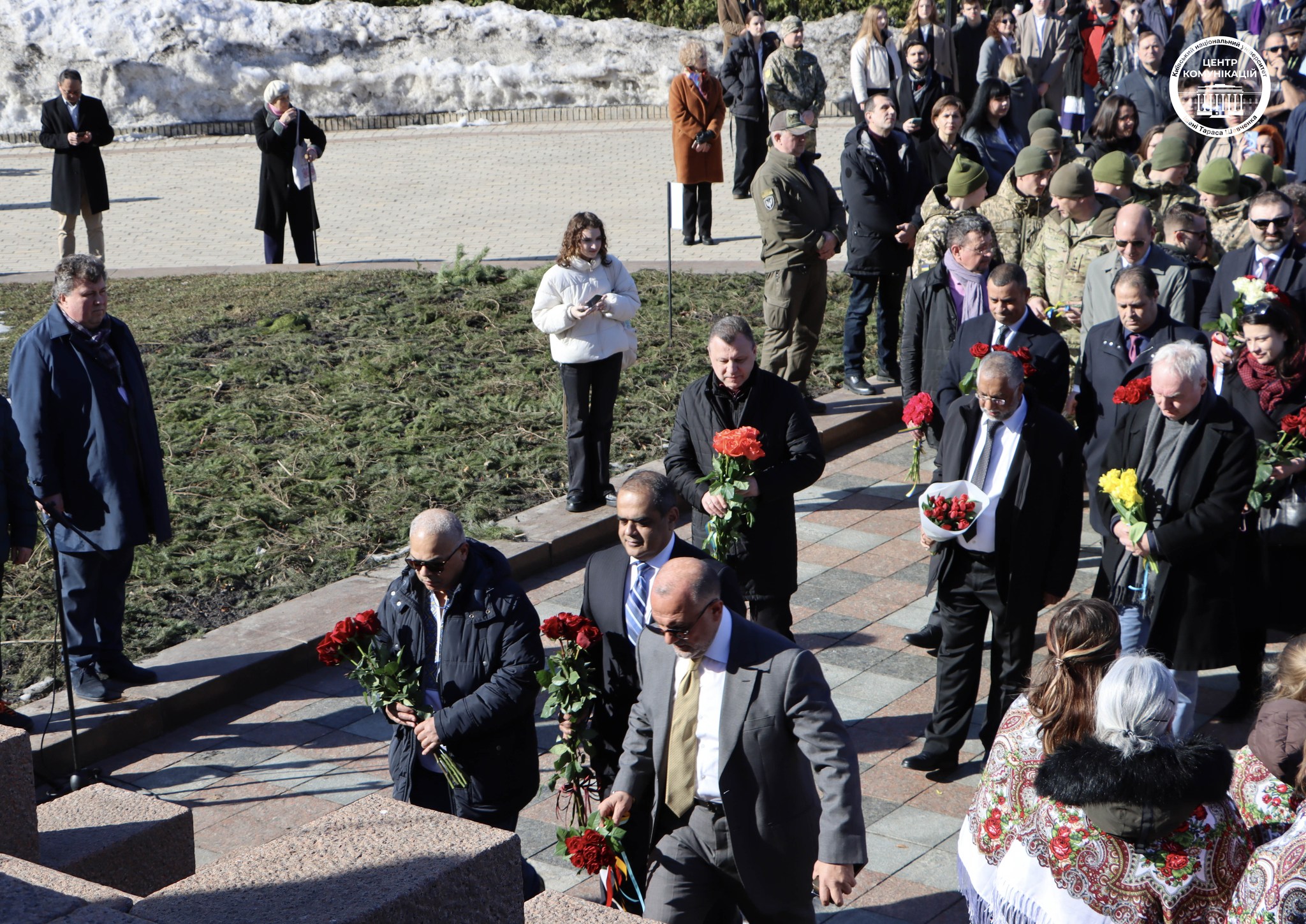 Цього ж дня університетська спільнота разом із представниками дипломатичних відомств вирушила до Канева, на Чернечу гору – місце поховання Кобзаря, щоб вшанувати пам’ять видатного українця.