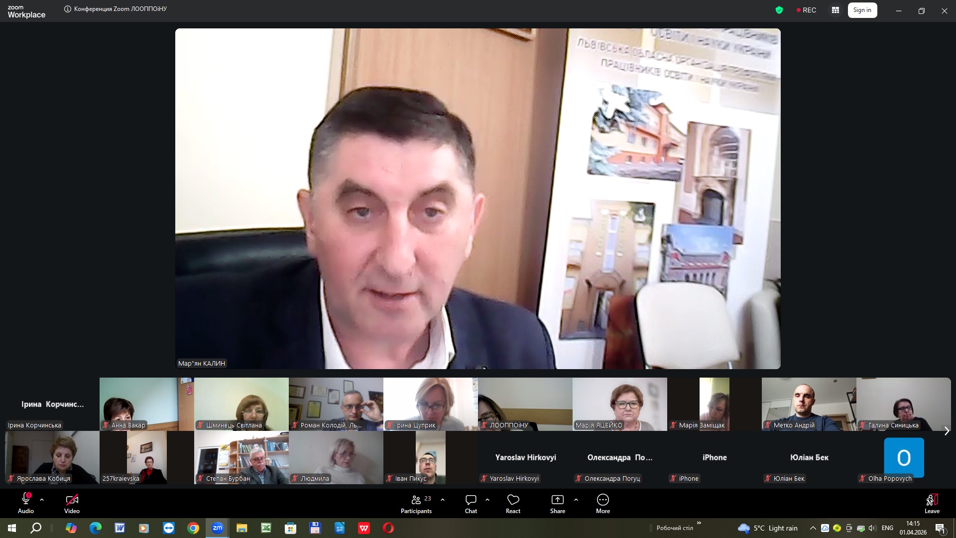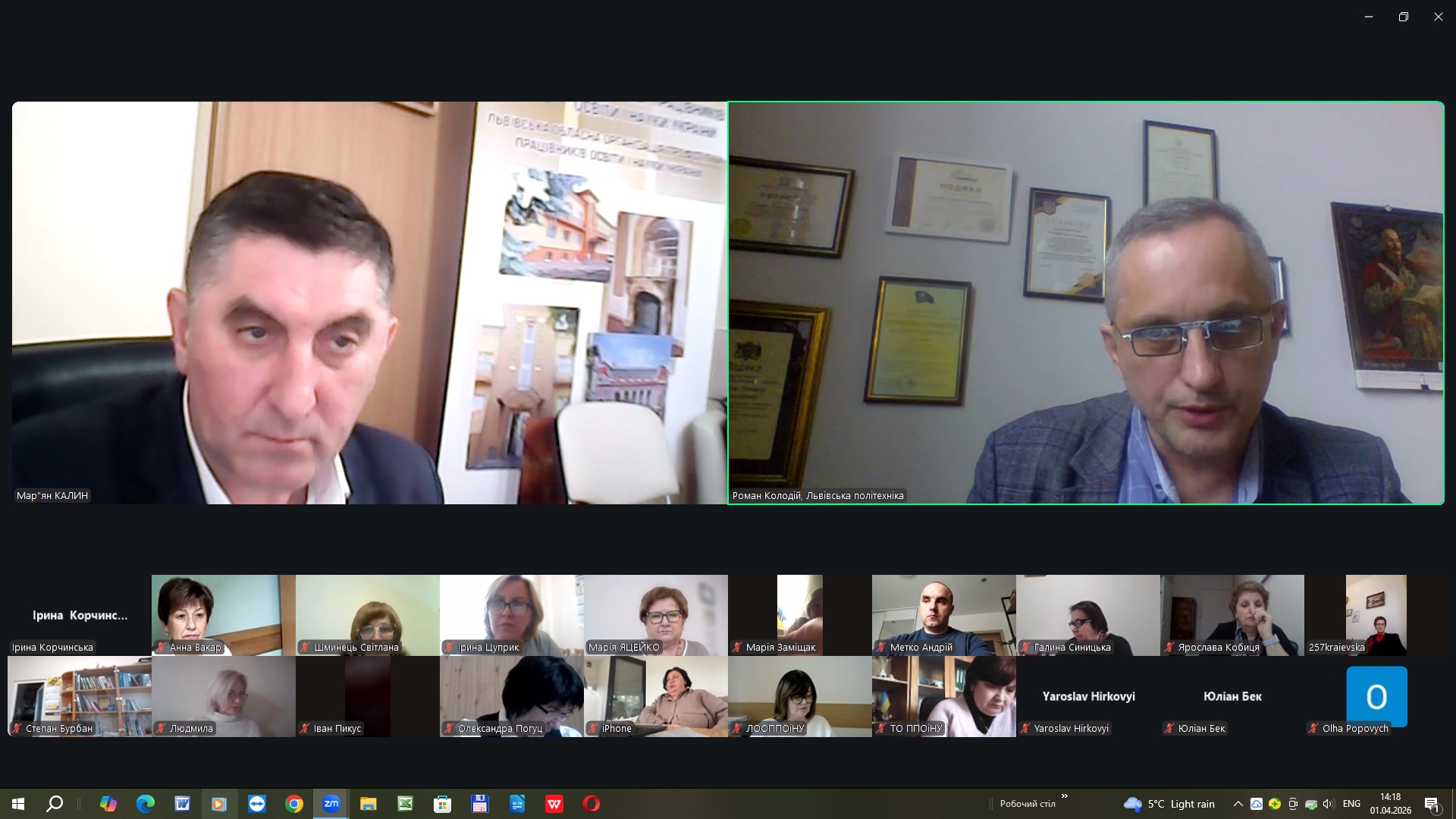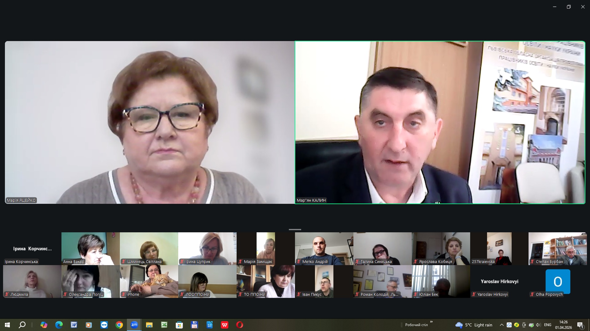 1 квітня 2026 року відбулося засідання Президії Львівської обласної організації профспілки працівників освіти і науки України, яке пройшло у форматі онлайн-конференції на платформі ZOOM. Захід об’єднав членів президії для обговорення ключових питань діяльності Профспілки та визначення подальших напрямів роботи.