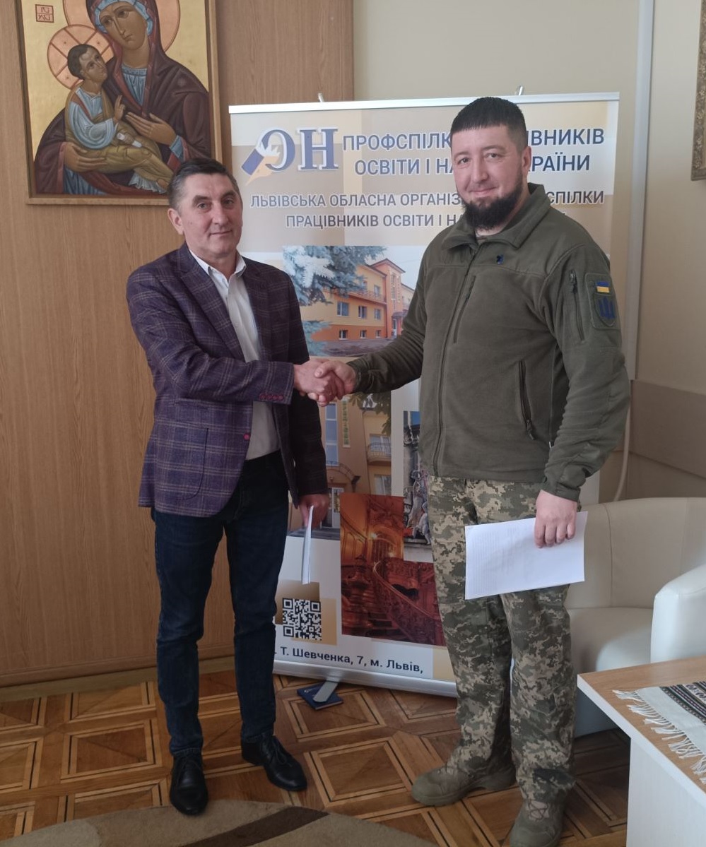 Меморандум підписали голова Львівської обласної організації Профспілки Мар’ян Калин та командир військової частини А4808 полковник Богдан Шевчук.