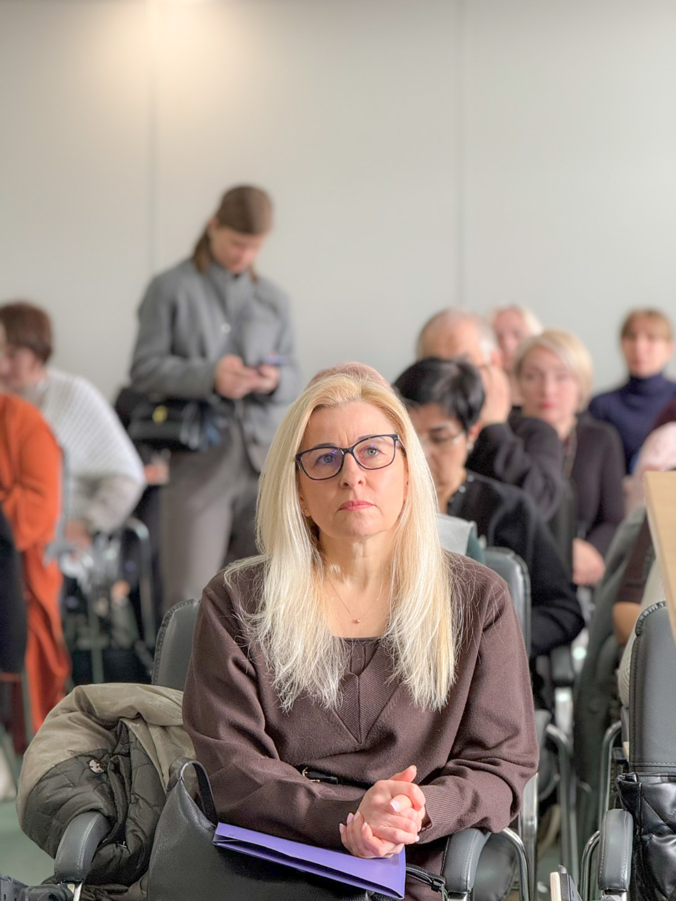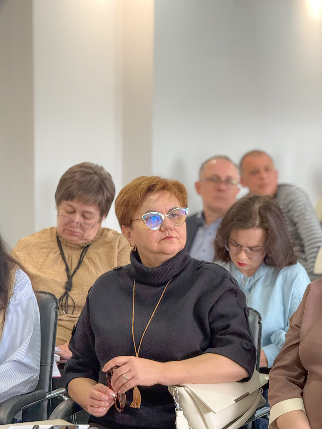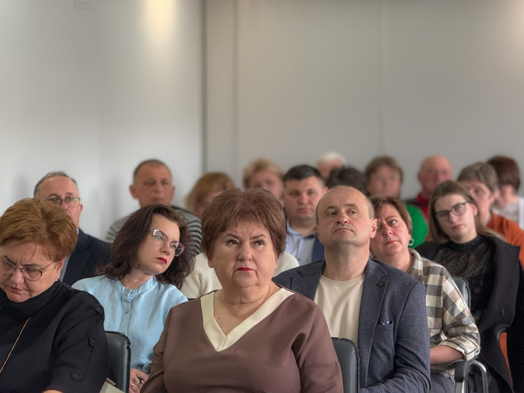 Начальник управління пенсійного забезпечення, надання страхових виплат та соціальних послуг ГУ ПФУ Світлана Руцька, начальник відділу перевірки правильності розрахунку розміру страхових виплат управління пенсійного забезпечення, надання страхових виплат та соціальних послуг Людмила Табака, заступник начальника управління інформаційних систем та електронних реєстрів-начальник відділу методології та контролю за використанням даних інформаційних систем та електронних реєстрів Василь Динис, головний спеціаліст відділу перевірки обґрунтованості видачі листків непрацездатності управління контрольно-перевірочної роботи Людмила Насалик розповіли присутнім про те, якими є загальні вимоги для призначення пенсії за віком, пенсії за вислугу років для педагогічних працівників у 2026 році, умови призначення та виплати грошової допомоги педагогічним працівникам при виході на пенсію відповідно до постанови Кабінету Міністрів України від 23.11.2011 р. № 1191, оцифрування відомостей про трудову діяльність, а також про основні нюанси щодо пенсійного забезпечення у 2026 році.