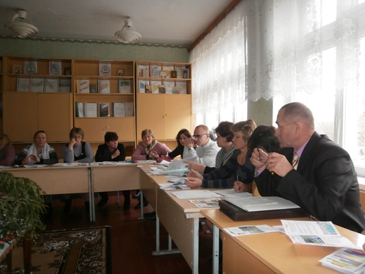 Ділилася досвідом роботи директор школи Н.В. Гирник. Вона продемонструвала велику кількість документації, яка систематизована відповідно вимог чинного законодавства з питань дотримання безпеки та охорони праці. Також Наталія Василівна розповіла про те, як у школі проходить І етап Всеукраїнського громадського огляду-конкурсу стану умов і охорони праці.