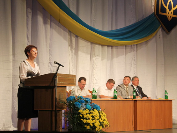 Людмила Кучерява – голова обласної організації Профспілки працівників освіти і науки України, якій було надано слово, коротко описала проблеми, від яких потерпають херсонські освітяни.