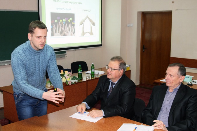 Було проведено тренінги для двох груп учасників. На першому з них учасники працювали над питанням покращення взаємодії в команді. Володимир Ковальчук та Віталій Копиш – тренери Центри освіти дорослих “Перспектива” НМЦ профспілок, які проводили навчання, запропонували присутнім розібрати питання життєвого циклу команди.