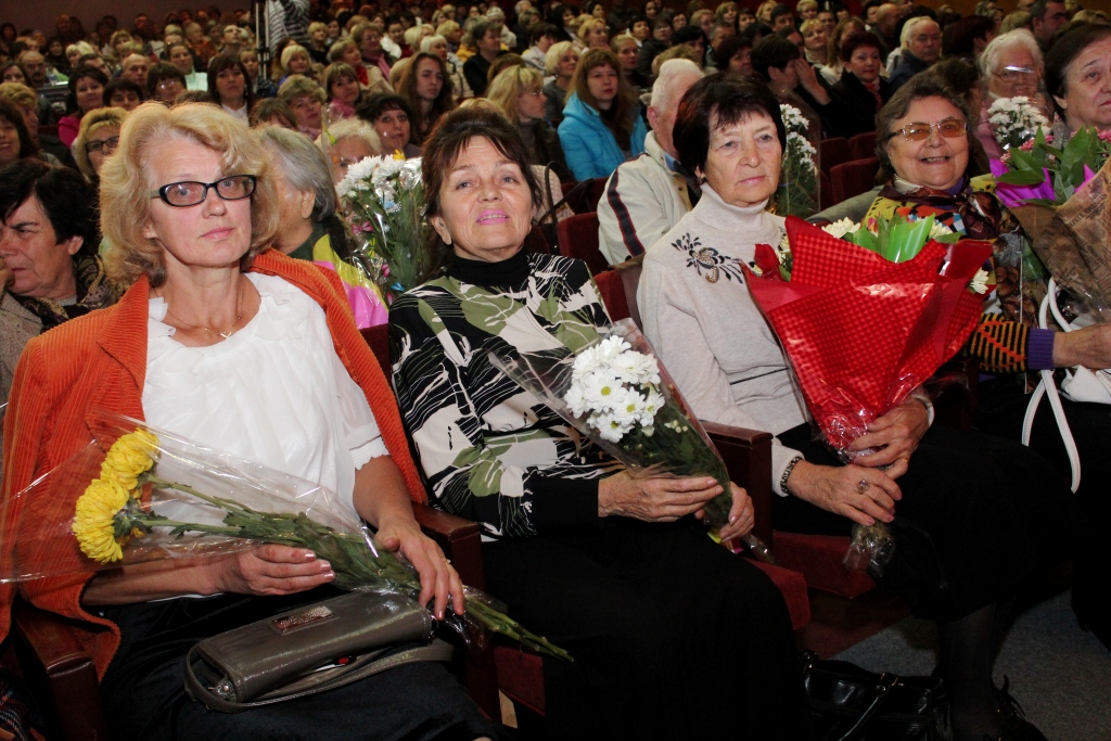 Цього вечора освітян міста прийшли привітати міський голова Геннадій Анатолійович Дикий, начальник управління освіти і науки Білоцерківської міської ради Юрій Федорович Петрик, голова Білоцерківської міської організації Профспілки працівників освіти і науки України Валентин Павлович Чепурченко, творчі дитячі колективи, артисти Київського обласного академічного музично-драматичного театру ім. П.Саксаганського.