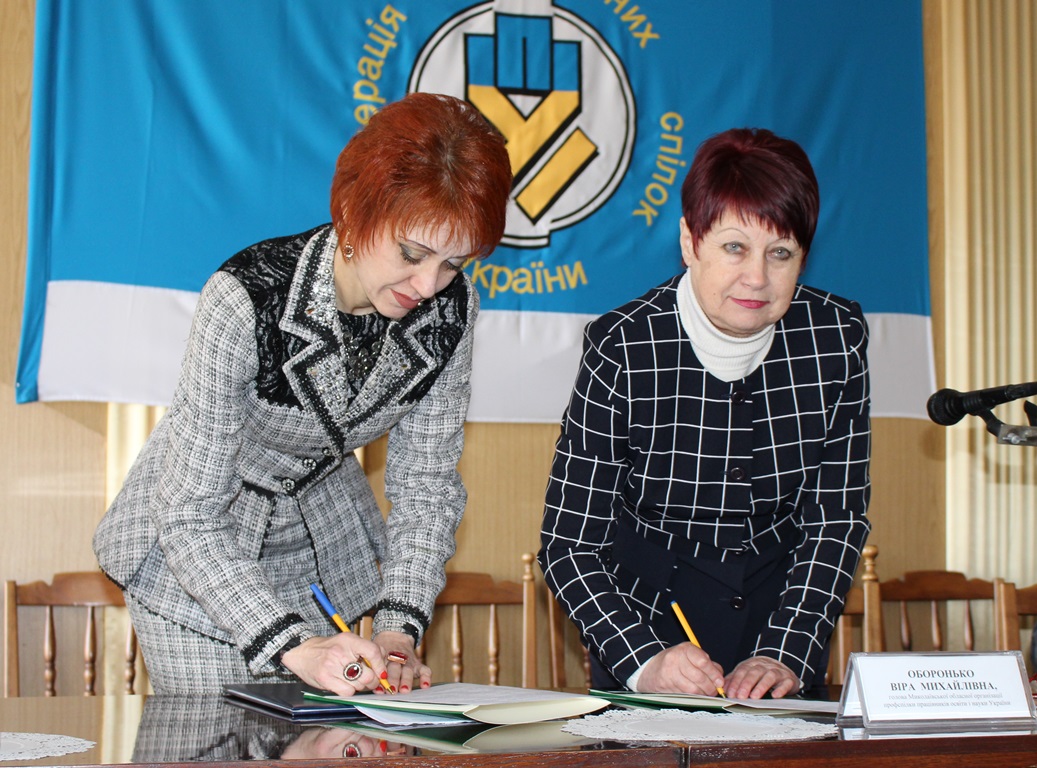 Голова обласної організації Профспілки Віра Михайлівна Оборонько та начальник відділення Національної служби посередництва і примирення в Миколаївській області Оксана Олегівна Євченко підписали Угоду про співпрацю.