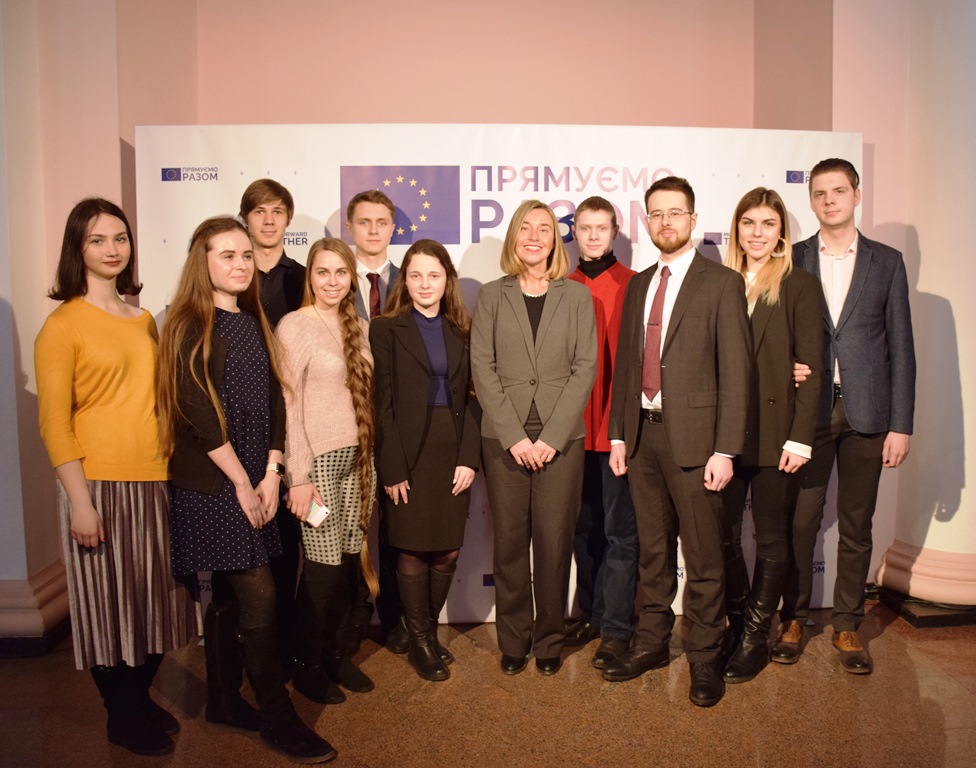 Також верховна представниця ЄС розповіла студентам про кампанію «Прямуємо разом»: «Українці недостатньо знають про програми ЄС в Україні. Тому ми розпочинаємо комунікаційну кампанію «Прямуємо разом» задля поінформованості про програми ЄС та можливості, що вони пропонують українцям».