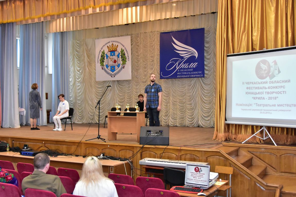 29 березня 2018 року Черкаський державний технологічний університет гостинно приймав учасників ІІ-го Черкаського обласного Фестивалю-конкурсу юнацької творчості «КРИЛА – 2018» – надзвичайно обдарованих юнаків і дівчат Черкащини, об’єднаних спільним почуттям любові до поезії, художнього слова і театрального мистецтва, та шановних гостей заходу.