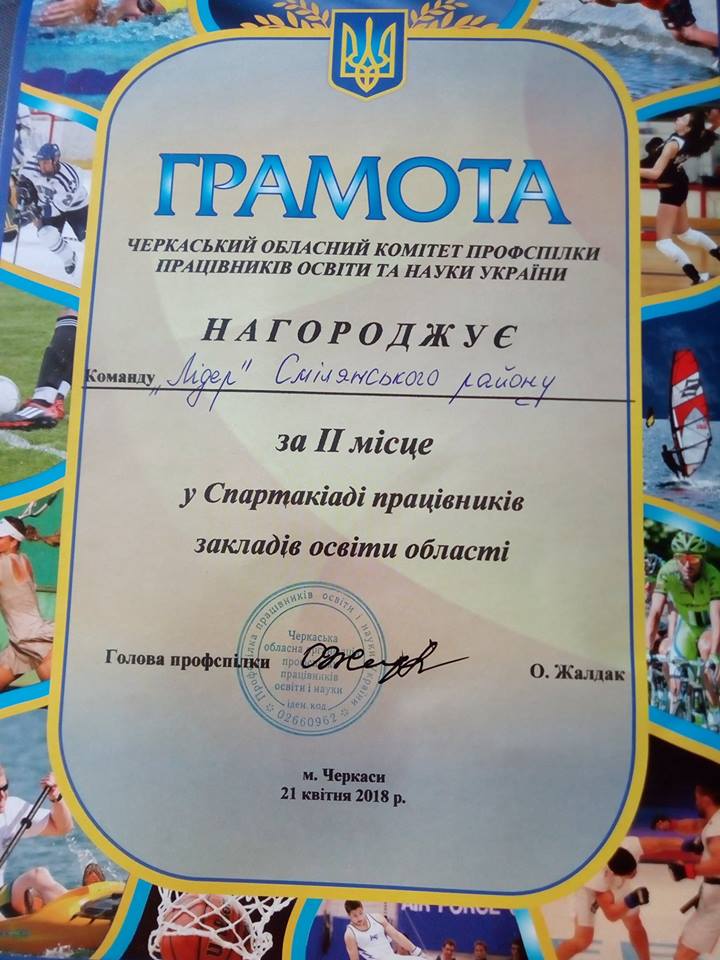 21 квітня 2018 року на Центральному стадіоні у м. Черкаси відбувся обласний етап спартакіади серед працівників закладів освіти Черкаської області, де освітяни Смілянського району вибороли почесне ІІ місце!